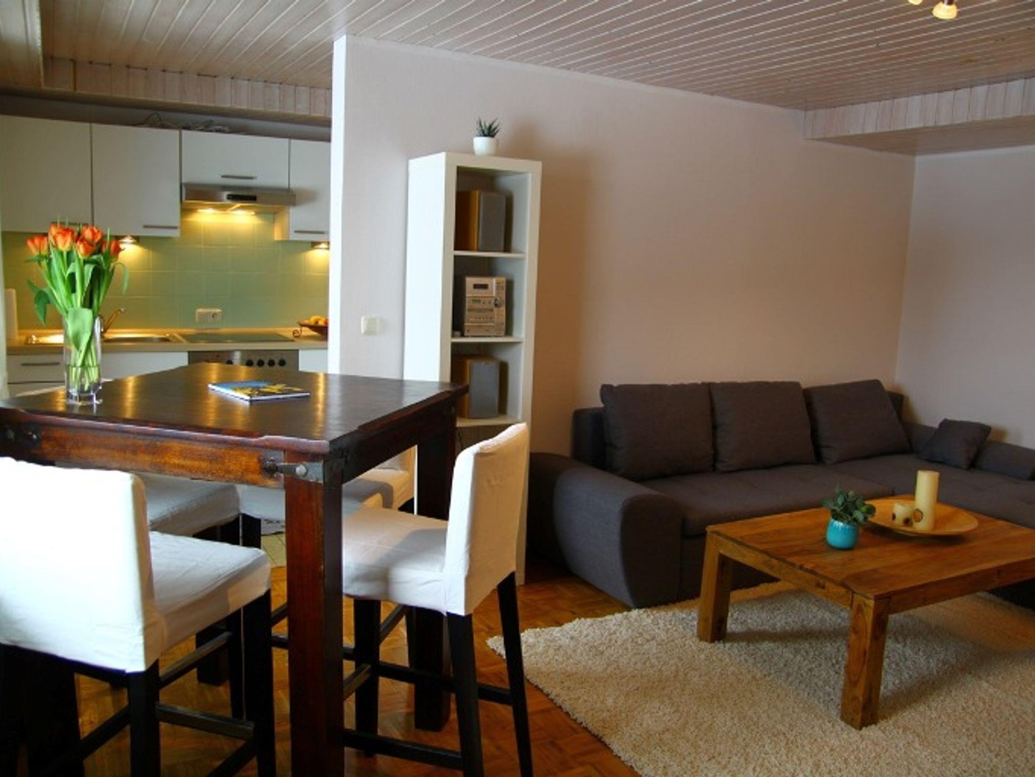 Die hochwertig ausgestattete ca. 50 qm Ferienwohnung befindet sich im Erdgeschoss unseres Hauses. Sie hat einen separaten Eingang, eine eigene Terrasse inklusive Gartenmöbel sowie einen Grill. Die Mitnutzung des großen, eingewachsenen Gartens ist möglich. Die Wohnung bietet ein großes Wohn- und Esszimmer, ein separates Schlafzimmer mit einem Doppelbett, sowie eine komplett ausgestattete Küche mit Herd (Ceran), Backofen, Kühlschrank, Toaster, Wasserkocher und Kaffeemaschine. Das Bad ist mit begehbarer Dusche und Fußbodenheizung ausgestattet. Das Wohnzimmer hat ein gemütliches, modernes Ecksofa. Selbstverständlich bieten wir unseren Gästen kostenlosen Internetzugang via WLAN an. Wir freuen uns, Sie bei uns begrüßen zu dürfen und geben Ihnen gerne weiter Unterstützung, damit Ihr Urlaub Ihren Vorstellungen entspricht! Belegung: 1-2 Personen