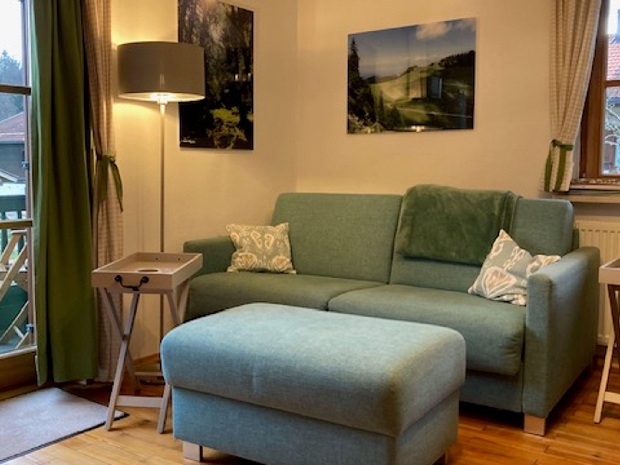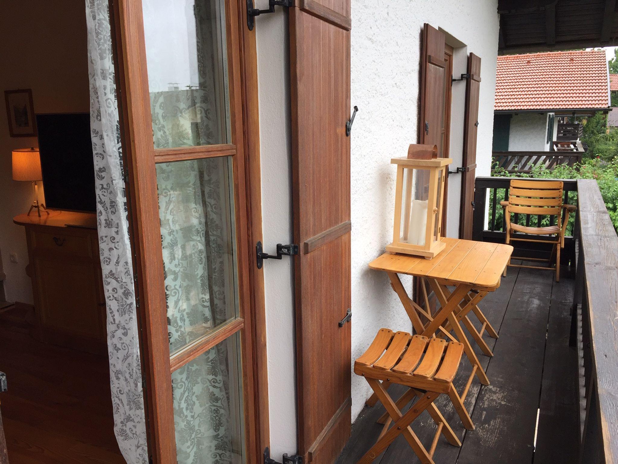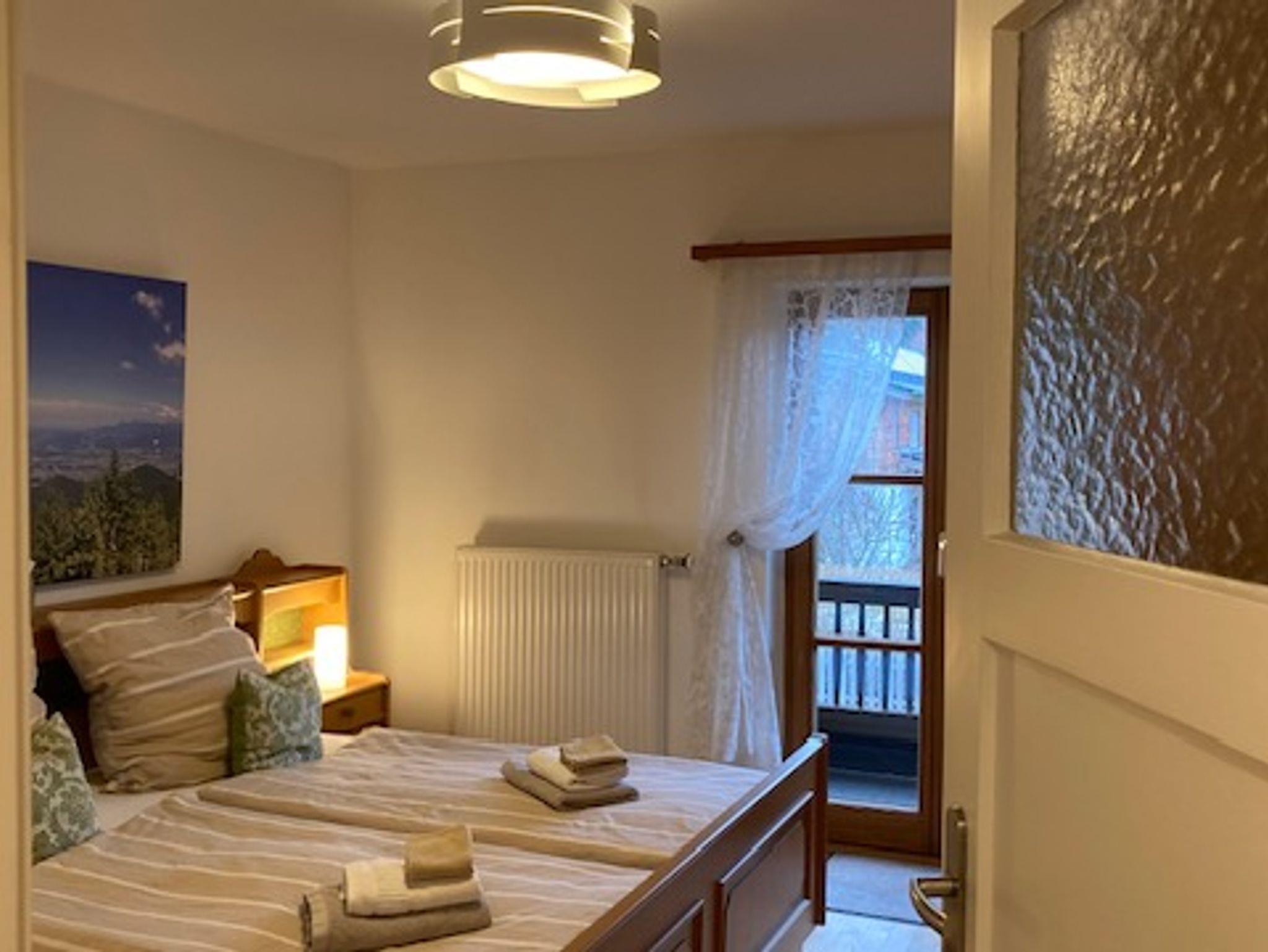 Die gemütliche Wohnung liegt im OG und ihre zugehörige Westterrasse (ca. 30 m²) hat Blick auf das Wendelsteingebirgsmassiv. Die gemütliche 51 m² Wohnung besteht aus der Essküche mit maßgeschreinerter Sitzgruppe, Einbauküche mit Geschirrspüler, Schlafzimmer mit Doppelbett (1,80x1,90m Liegefläche) Wohnzimmer mit hochwertiger Klappschlafcouch (Liegefläche 1,60 x 2,00m), Holzkachelofen und Flachbildfernseher, Bad mit Dusch-Badewanne, Fön und ausreichend Stauraum, Flur mit Garderobe. Besonderes Highlight ist der freigelegte und renovierte Original Fichtenparkett. Weich und mit Knarzgeräuschen erzeugt er ein besonderes Maß an Gemütlichkeit.