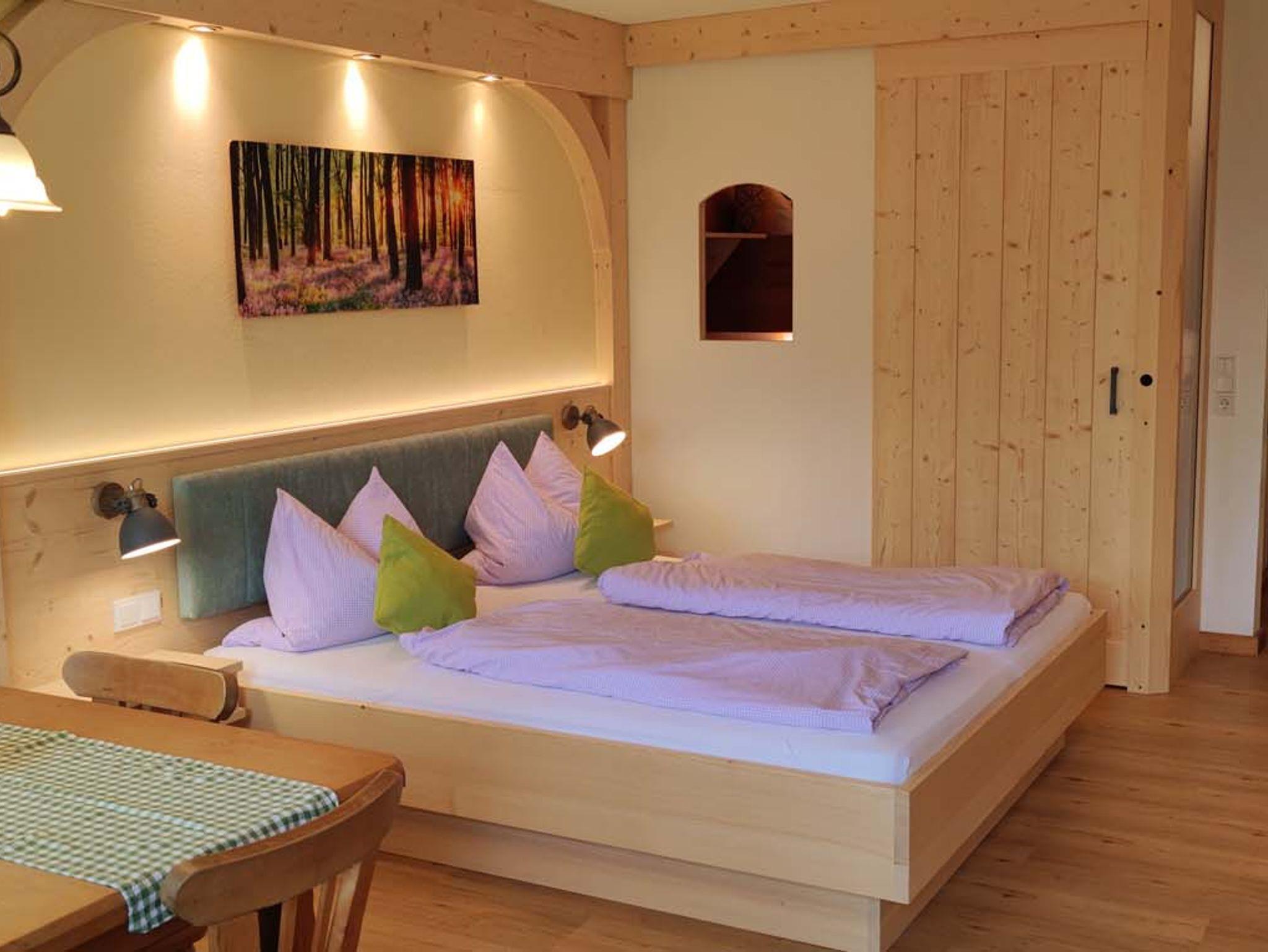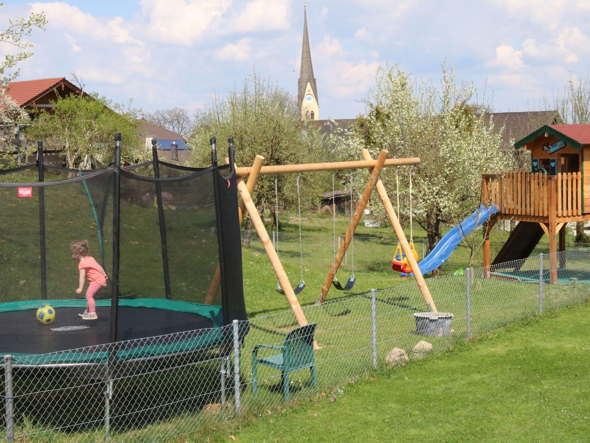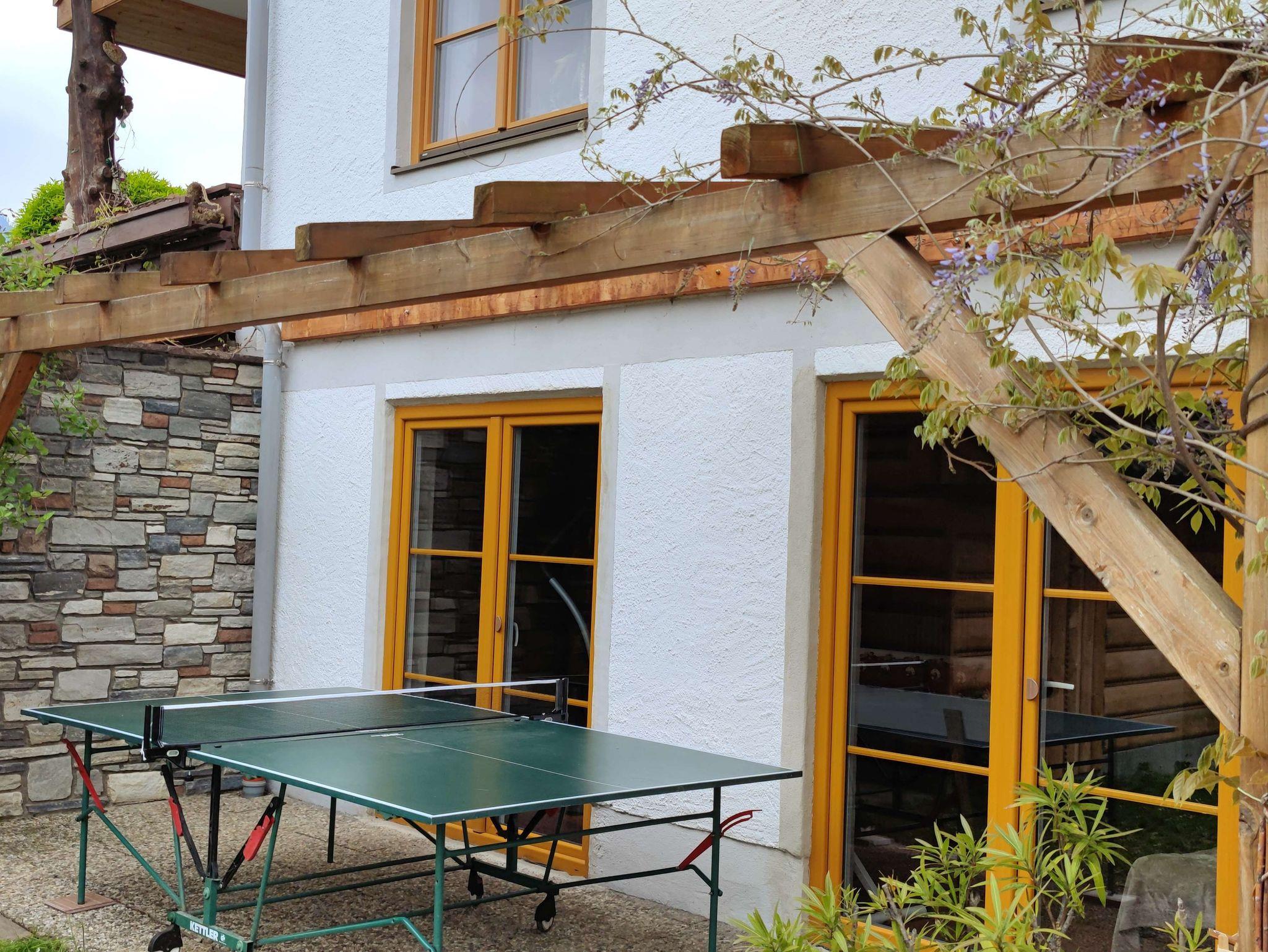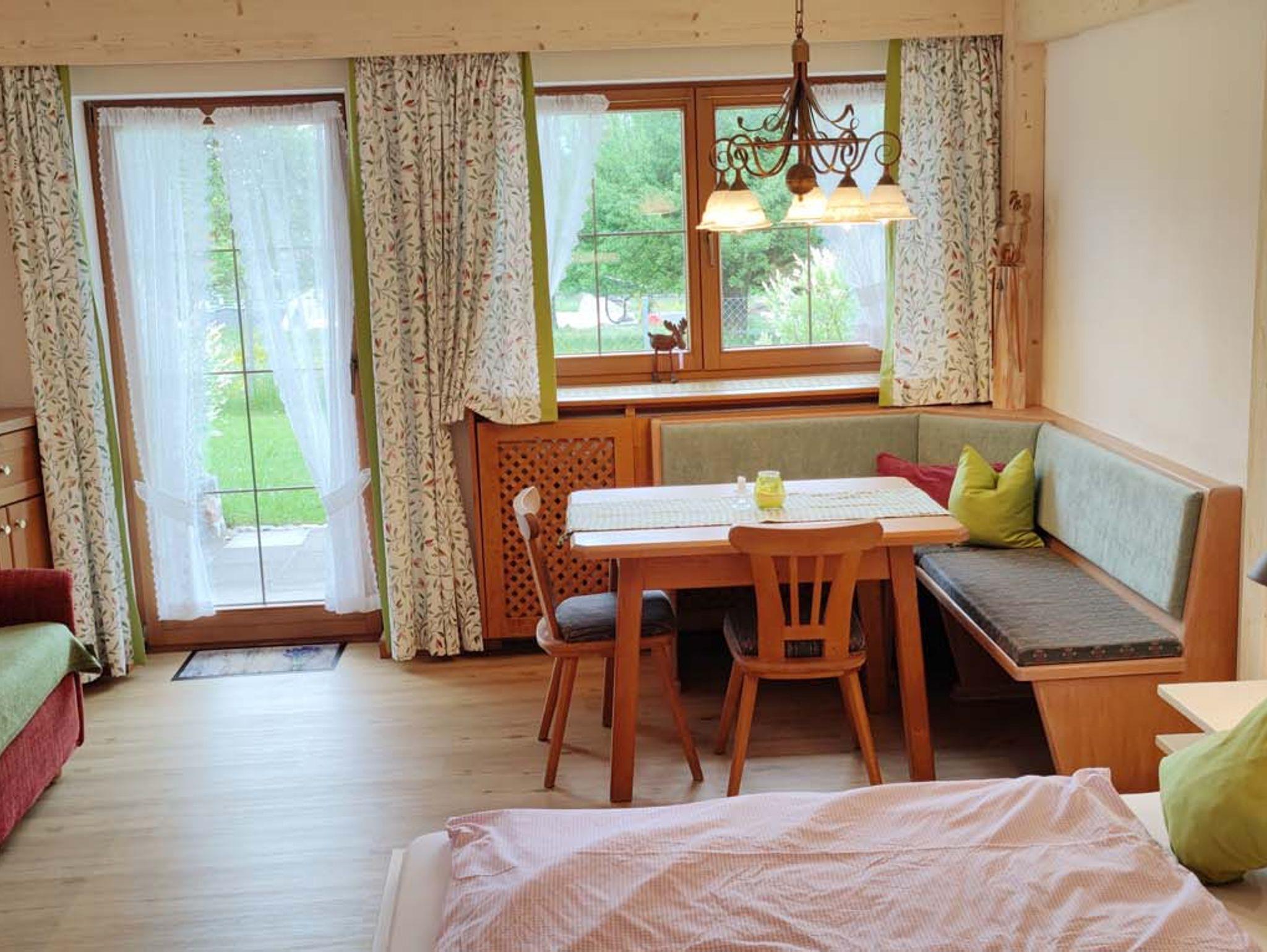 Vor dem Zimmer ist ihre eigene Terrasse mit Gartenmöbeln und Blick auf den Obstgarten, Pferdekoppel und den Berggipfeln der Inntalerberge. Der Spielplatz für die Kinder ist gleich um die Ecke.