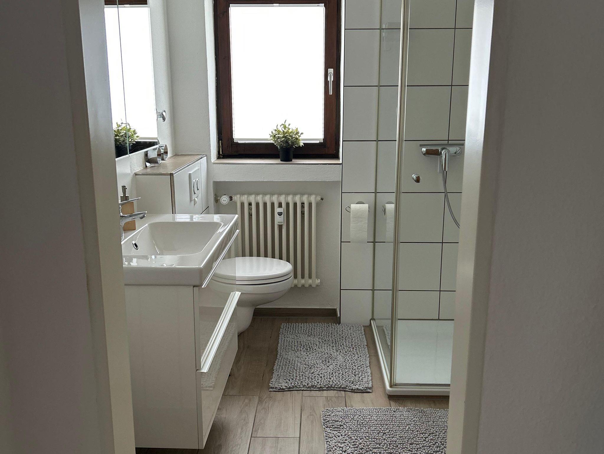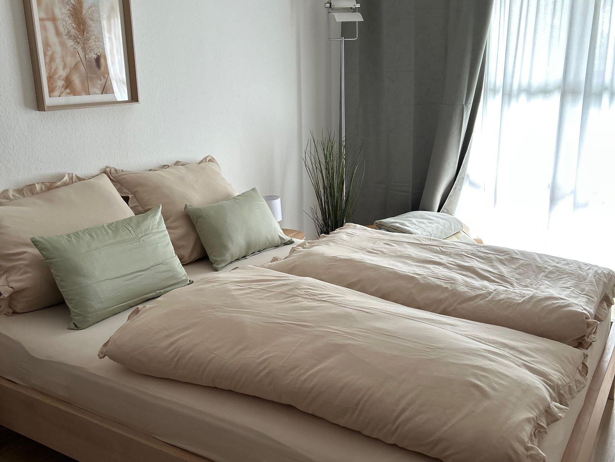 Die helle und stilvoll gestaltete Wohnung liegt im ersten Stock eines ruhigen Mehrfamilienhauses und bietet alles, was man für einen entspannten Aufenthalt braucht.