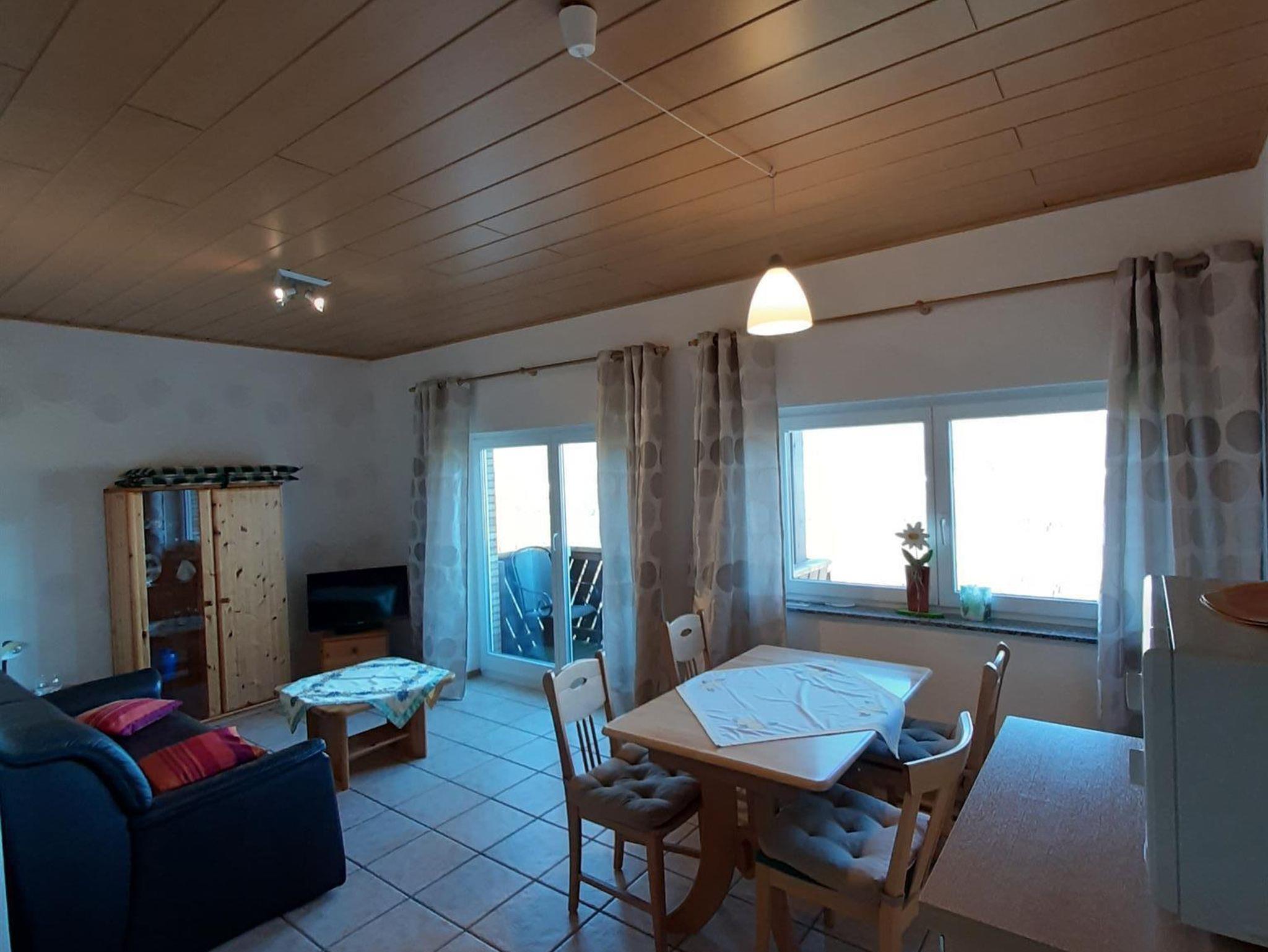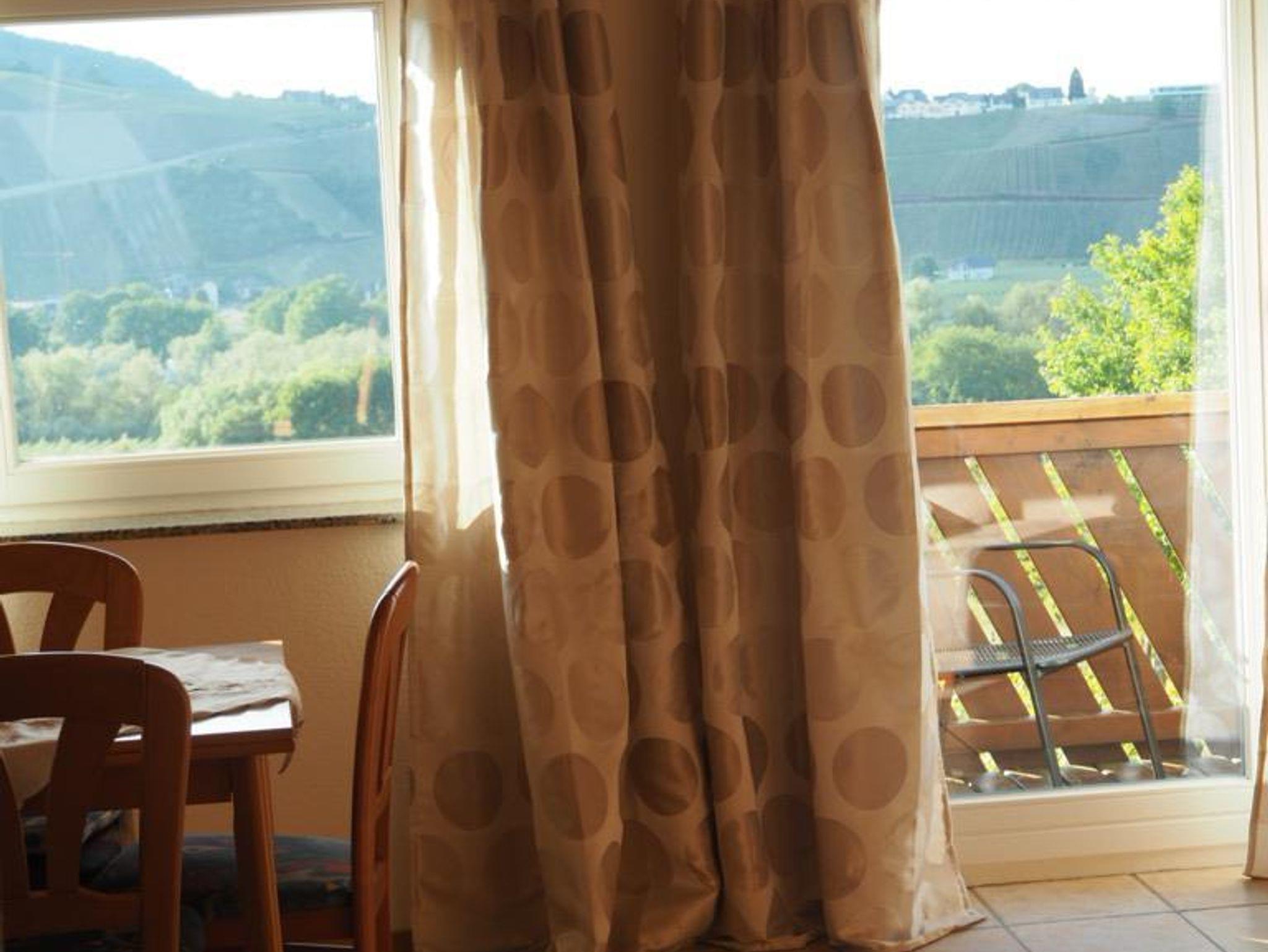 Komfortable Wohnung im Erdgeschoss mit mit Panoramablick auf das Moseltal, Wohn-/Essküche, Wohnraum mit Schlafcouch, TV, 1 Doppelschlafzimmer, Bad mit Dusche/WC, Balkon.