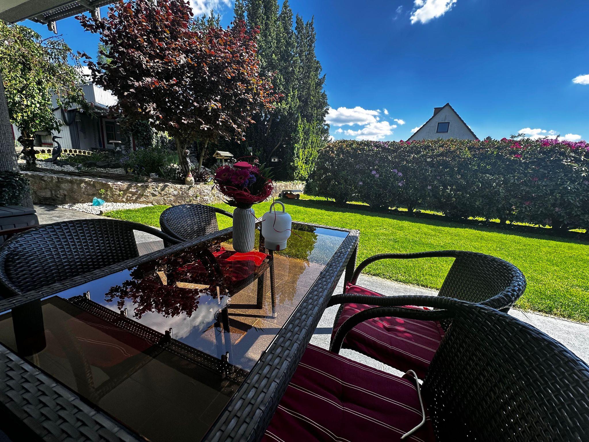 Modern eingerichtete Ferienwohnungen mit Schlafzimmer, Wohn-Esszimmer (mit Schreibtisch, Designer-Bluetooth-Box kooduu, Hifi, Smart-TV, Wlan kostenlos) und voll ausgestatteter Küche (Geschirrspüler, Backofen, Kühlschrank, Gefrierfach, Toaster, Kaffeemaschine, Senseo-Pad-Kaffeemaschine, Eierkocher, Wasserkocher). Terrasse bzw. Wohnung ebenerdig erreichbar, eigene Terrasse mit Gartenmöbel, Sonnenliege, Sonnenschirm. Elektrische Rollläden. Auf Wunsch bereiten wir zwei separate Betten vor (Schlafsofa/Doppelbett).
