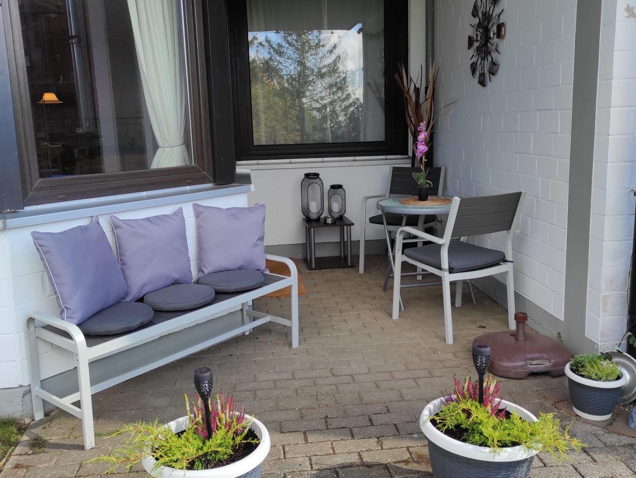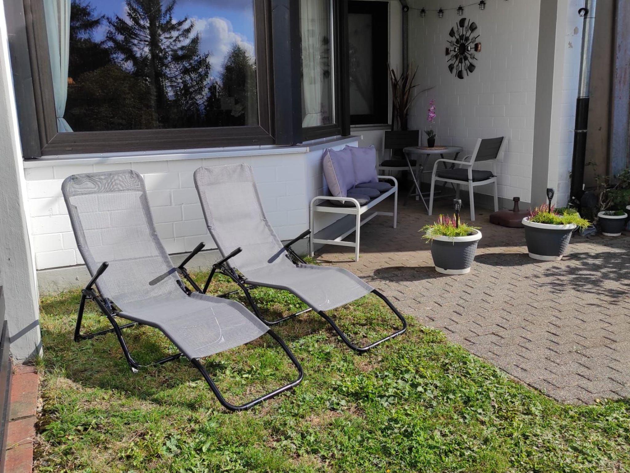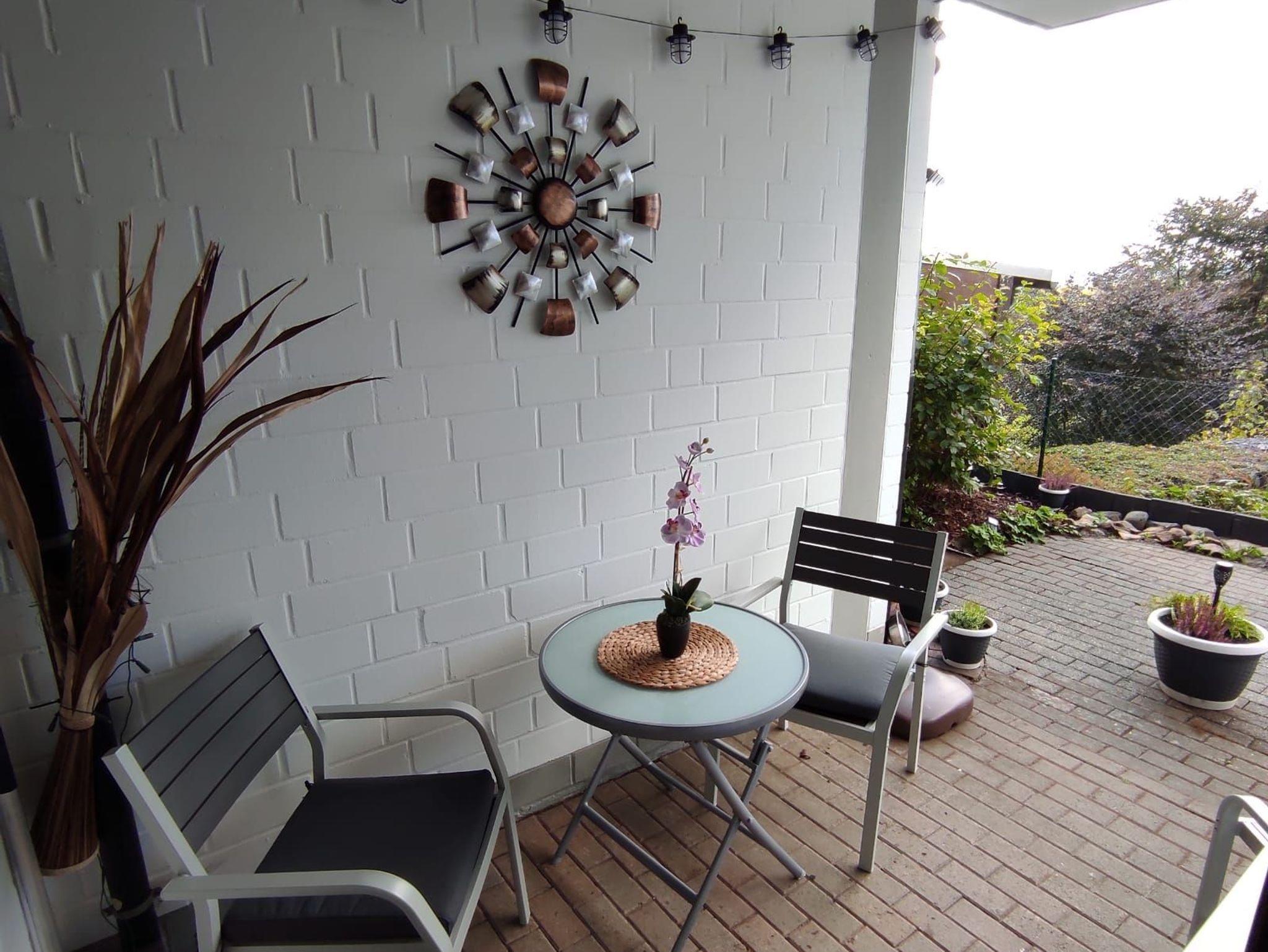 Auf der Terrasse der Ferienwohnung können Sie viele sonnige Stunden verweilen und genießen. Wir stellen Ihnen einen kleinen Steckmetallzaun zur Verfügung. Somit haben Ihre Vierbeiner einen kleinen Auslauf. Im Wohnzimmer wie auch im Schlafzimmer Die gesamte Wohnung hat W-Lan.