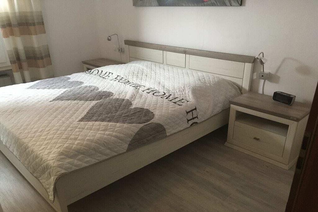 På 1. etage: (entre(, ), Køkken(kogeplade, elkedel, brødrister, ovn, opvaskemaskine , køleskab, fryser), stue / spisestue(dobbeltsovesofa, Fjernsyn, spisebord, radio, stereoanlæg), soveværelse(, dobbeltseng, radio), badeværelse(, toilet, bruser, håndvask)) , , , garage, Internetadgang, balkon(, havemøbler), varme, parkering, tørreskab
