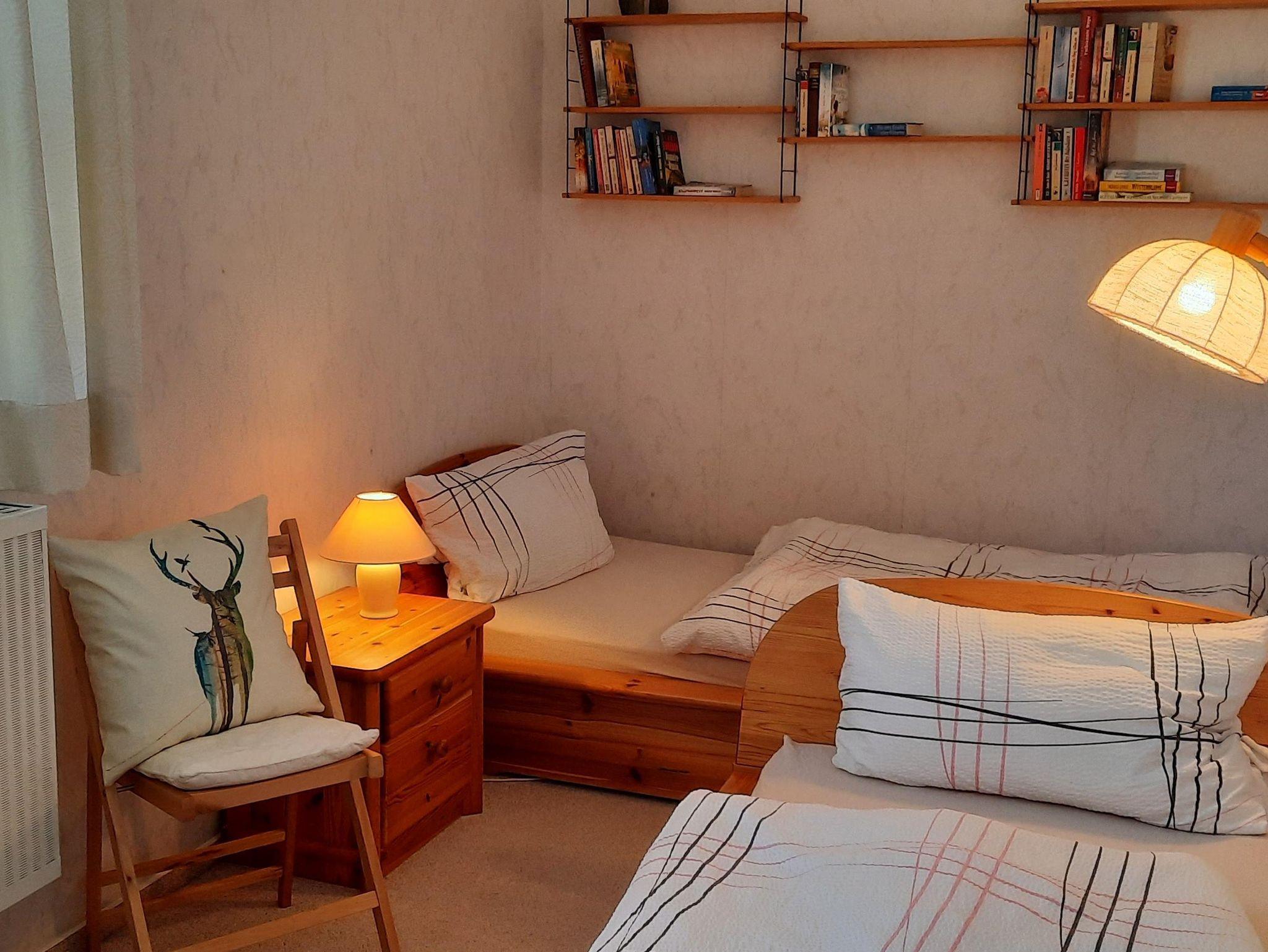 Die ca. 65 m² große Nichtraucher-Ferienwohnung im Erdgeschoss bietet Platz für zwei bis vier Personen und verfügt über zwei Schlafzimmer, ein Bad mit Wanne und Dusche sowie ein gemütliches Wohnzimmer mit TV und Unterhaltung. Vom Wohnbereich gelangt man auf den möblierten Balkon. Die Küche ist voll ausgestattet. Zudem stehen WLAN, Parkplatz, Waschmaschine sowie Extras wie Kinderbett und Stauraum für Fahrräder oder Ski zur Verfügung.