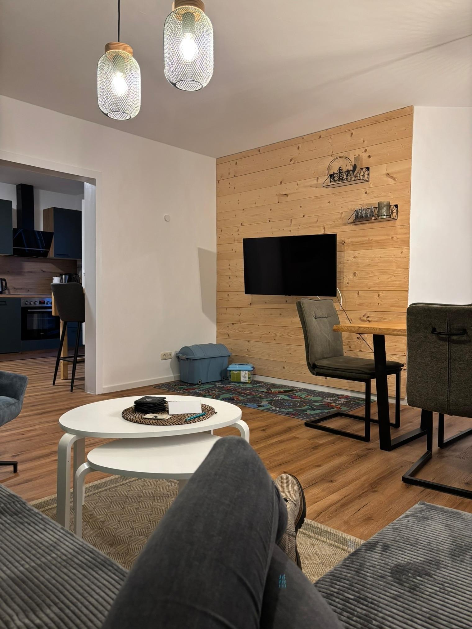Diese Wohnung befindet sich im 1. Obergeschoss und hat eine Größe von ca. 91m². Sie verfügt über 2 Schlafzimmer, die jeweils mit einem komfortablen Doppelbett (Boxspring) für erholsame Nächte und 1 Schlafzimmer mit je 2 Einzelbetten ausgestattet ist. Eine voll ausgestattete Küche für Selbstversorger und ein gemütliches Wohnzimmer mit TV. Kostenloses W-Lan steht ihnen ebenfalls zu Verfügung. Außerdem ein modernes Badezimmer mit bodentiefer begehbarer Dusche und einem Haarföhn. Zudem steht im Keller eine Waschmaschine und ein Trockner zur Verfügung. Abstellmöglichkeiten für Fahrräder, Schlitten, etc sind vorhanden. Außerdem gibt es eine Parkmöglichkeit pro Wohnung auf dem Grundstück. Die Wohnung verfügt optional über Bettwäsche und Handtücher.