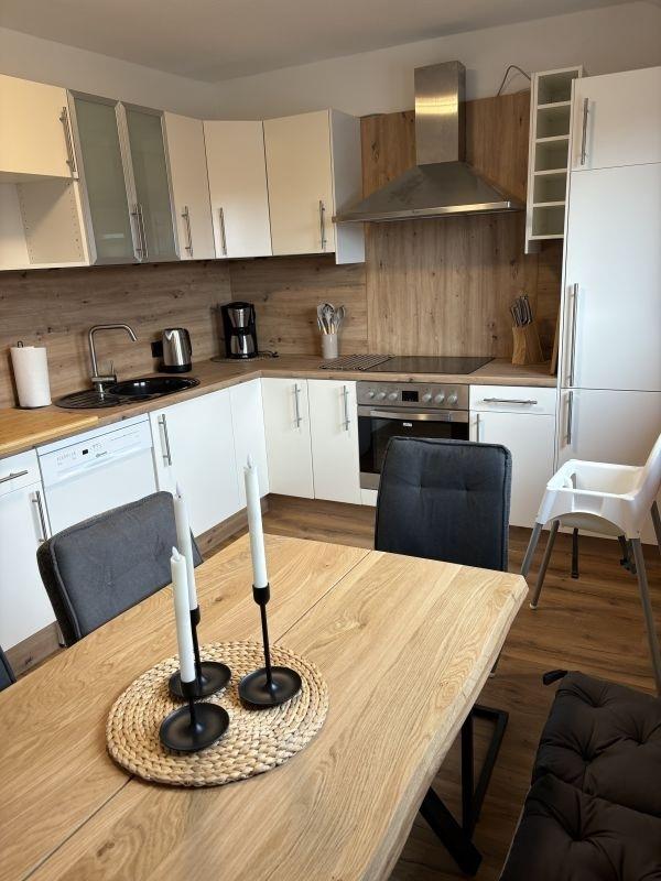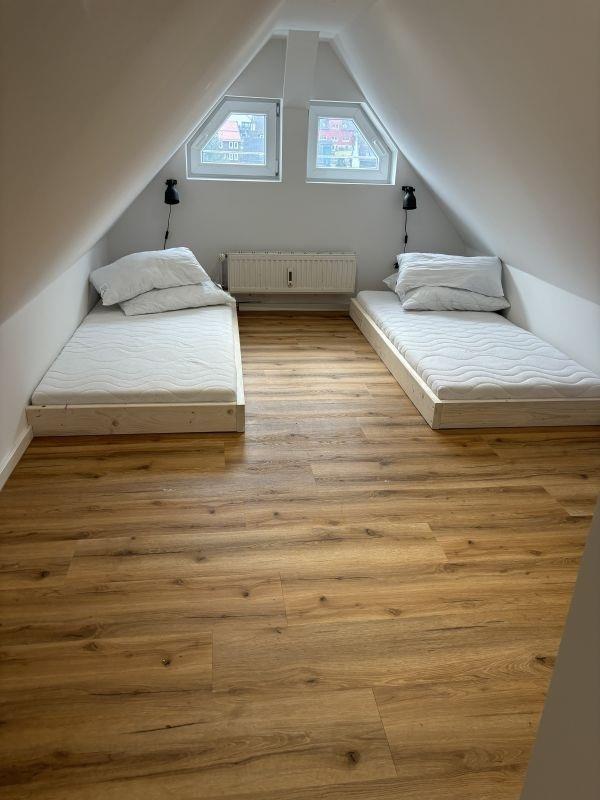 Diese Wohnung befindet sich im Dachgeschoss des Hauses und hat eine Größe von ca. 82 m². Sie verfügt über 2 Schlafzimmer, die jeweils mit einem komfortablen Doppelbett (Boxspring) für erholsame Nächte und 1 Schlafzimmer, welches sich im Spitzboden befindet, mit einem Doppelbett ausgestattet ist. Eine voll ausgestattete Küche für Selbstversorger und ein gemütliches Wohnzimmer mit TV. Kostenloses W-Lan steht ihnen ebenfalls zu Verfügung. Außerdem ein modernes Badezimmer mit bodentiefer begehbarer Dusche und einem Haarföhn. Zudem steht im Keller eine Waschmaschine und ein Trockner zur Verfügung. Abstellmöglichkeiten für Fahrräder, Schlitten, etc sind vorhanden. Außerdem gibt es eine Parkmöglichkeit pro Wohnung auf dem Grundstück. Die Wohnung verfügt über Bettwäsche und Handtücher.