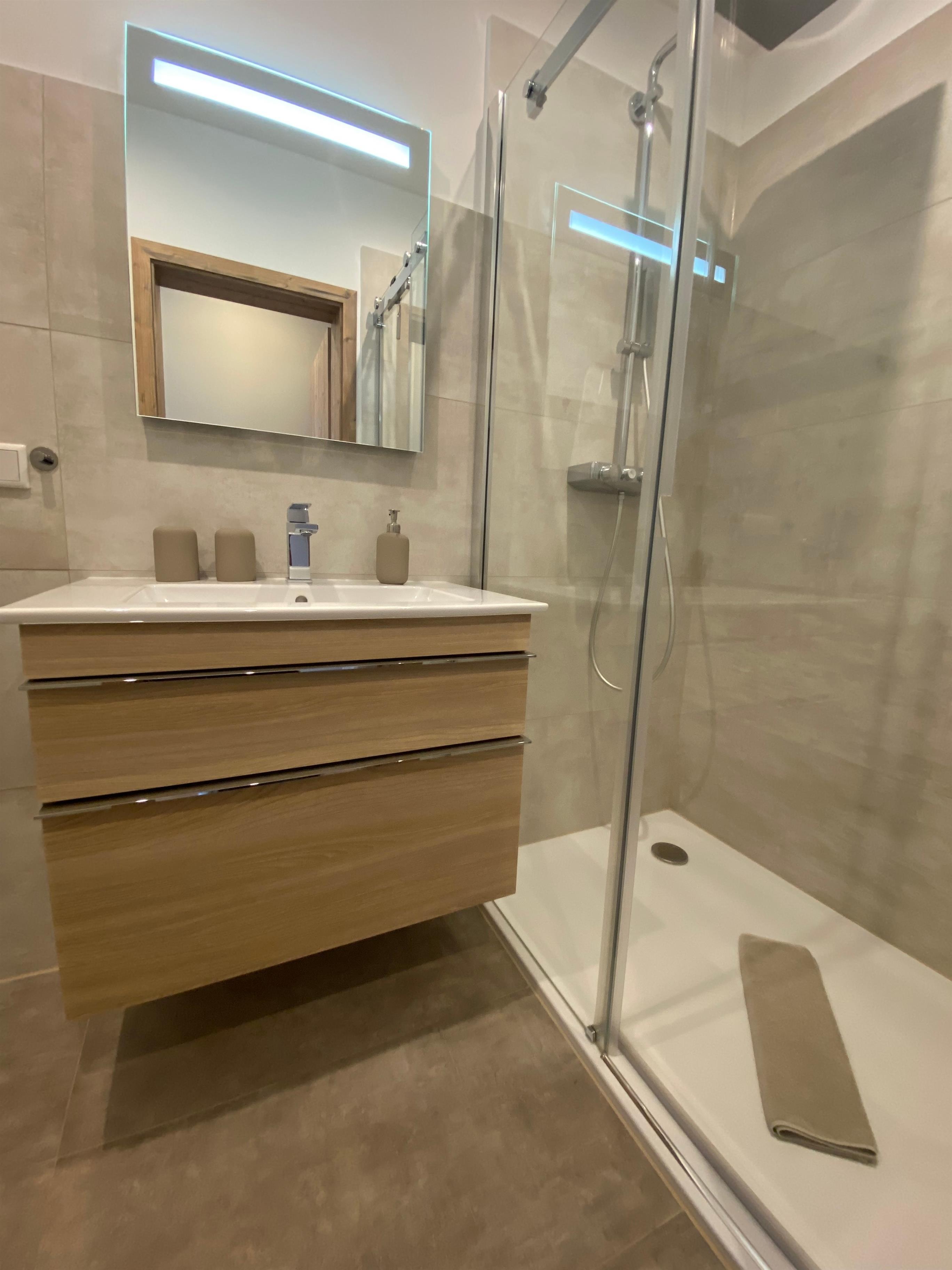 Sie ist weiterhin mit einer großen Sauna und 2 Schlafzimmer ausgestattet. Beide Schlafzimmer haben jeweils ein