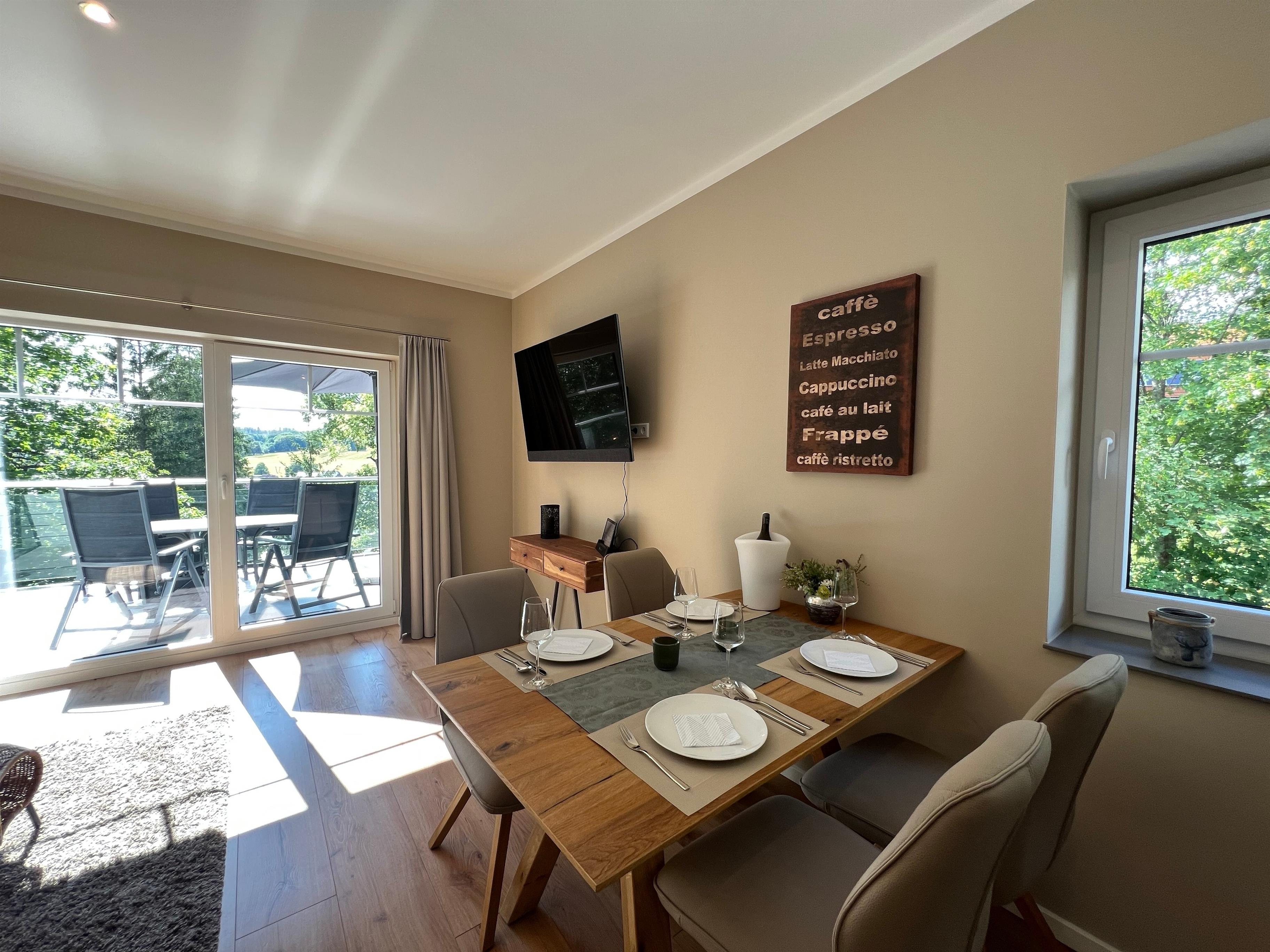 Appartement mit geräumigem Wohn-Ess- und Küchenbereich, Sauna, zwei Schlafzimmern mit Bädern en Suite, nach Westen ausgerichtete Terrasse