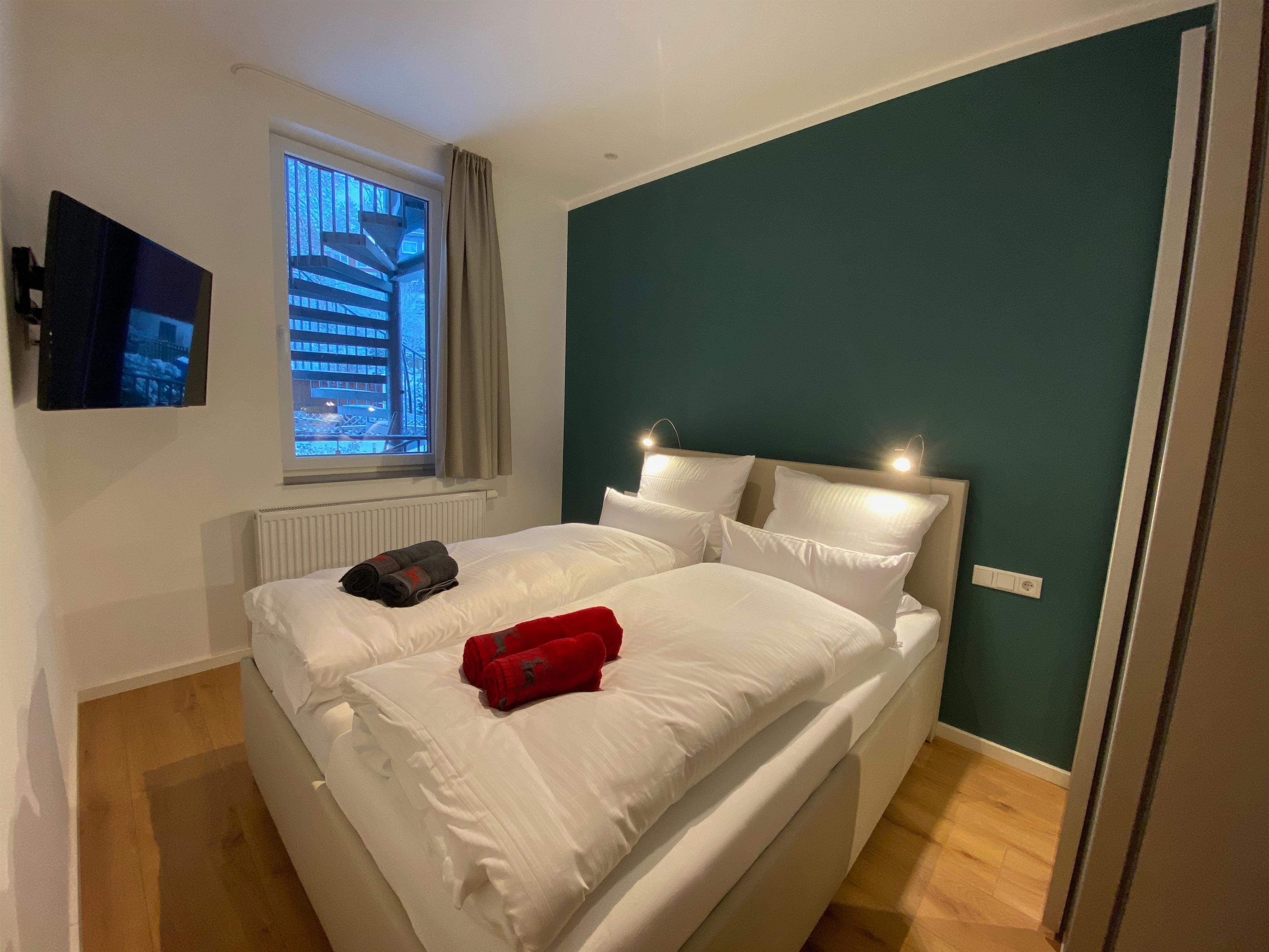 Dieses Appartement befindet sich im 1.OG, ist für 4 Personen ausgelegt, ca. 87 qm groß und nach Westen ausgerichtet. Sie verfügt über einen zusammenhängenden Wohn-Essbereich mit einem ca. 12 qm großen Balkon knapp unterhalb Baumkronenhöhe. Sie ist weiterhin mit einer Aussen-Infrarotkabine auf dem Balkon und 2 Schlafzimmern ausgestattet. Ein Schlafzimmer hat ein Ensuite-Bad. Die Bäder sind mit Regenduschen ausgestattet.