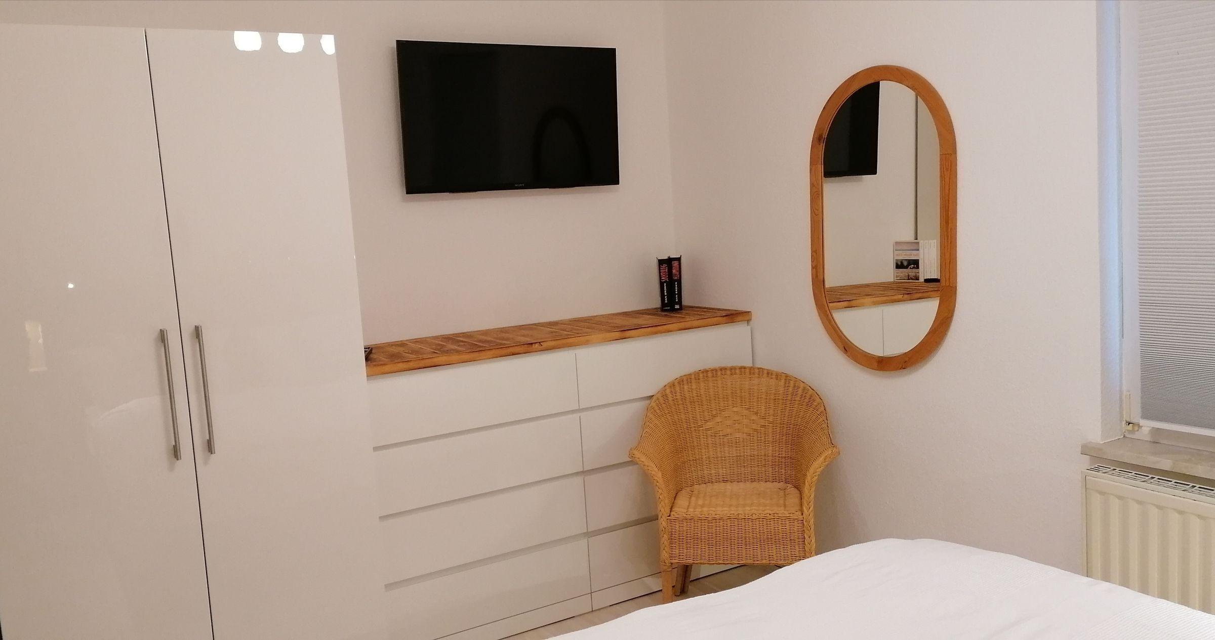 Die gemütliche Ferienwohnung bietet alles, was man für einen erholsamen Aufenthalt braucht. Das helle Wohnschlafzimmer lädt zum Entspannen ein und verfügt über eine bequeme Schlafcouch und einen TV für gemütliche Abende. Die offene Küche ist voll ausgestattet mit einem Elektro-/Gasherd, Backofen, Kühlschrank, Geschirrspüler, Kaffeemaschine, Toaster und Wasserkocher. Der Esstisch bietet Platz für gemeinsame Mahlzeiten. Im separaten Schlafzimmer erwartet die Gäste ein komfortables Doppelbett sowie ausreichend Stauraum in Schrank und Kommode. Das moderne Duschbad ist mit einem Haartrockner ausgestattet. Die Wohnung verfügt zudem über WLAN, eine HiFi-Anlage, einen Staubsauger, Brettspiele und ein Reinigungsset. Rauchmelder sorgen für die nötige Sicherheit. Die zentrale Lage und die gute Verkehrsanbindung machen diese Unterkunft zum idealen Ausgangspunkt für Ausflüge in die Umgebung. Entdecken Sie die schönen Seiten der Region und fühlen Sie sich wie zu Hause!