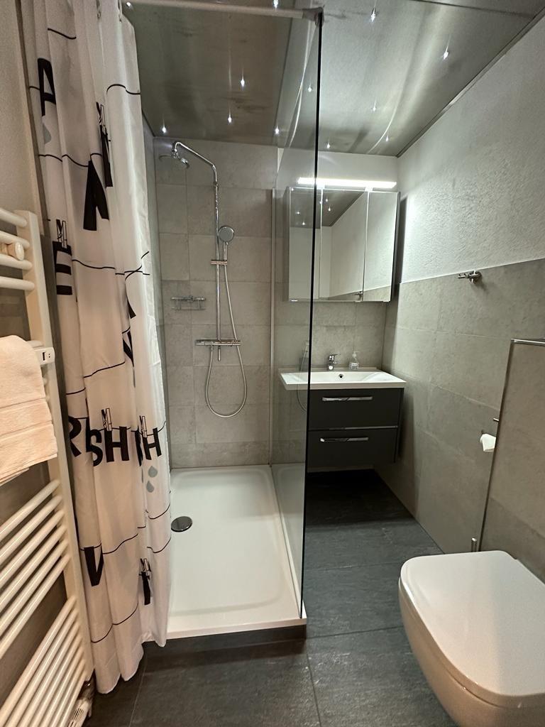 Die Badausstattung der Wohnung ist hervorragend – Sie finden ein modernes Badezimmer mit bodengleich Dusche, Handtüchern und Badetüchern zur Verfügung. Für zusätzlichen Komfort gibt es eine Waschmaschine und einen Trockner im Keller, die gemeinschaftlich genutzt werden können.
