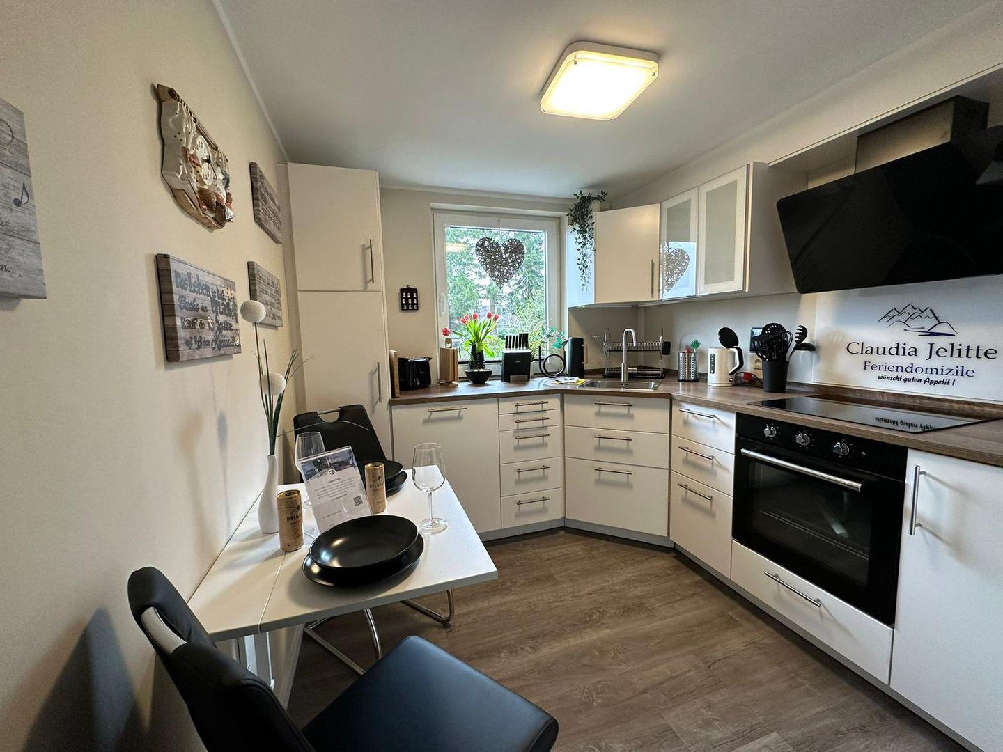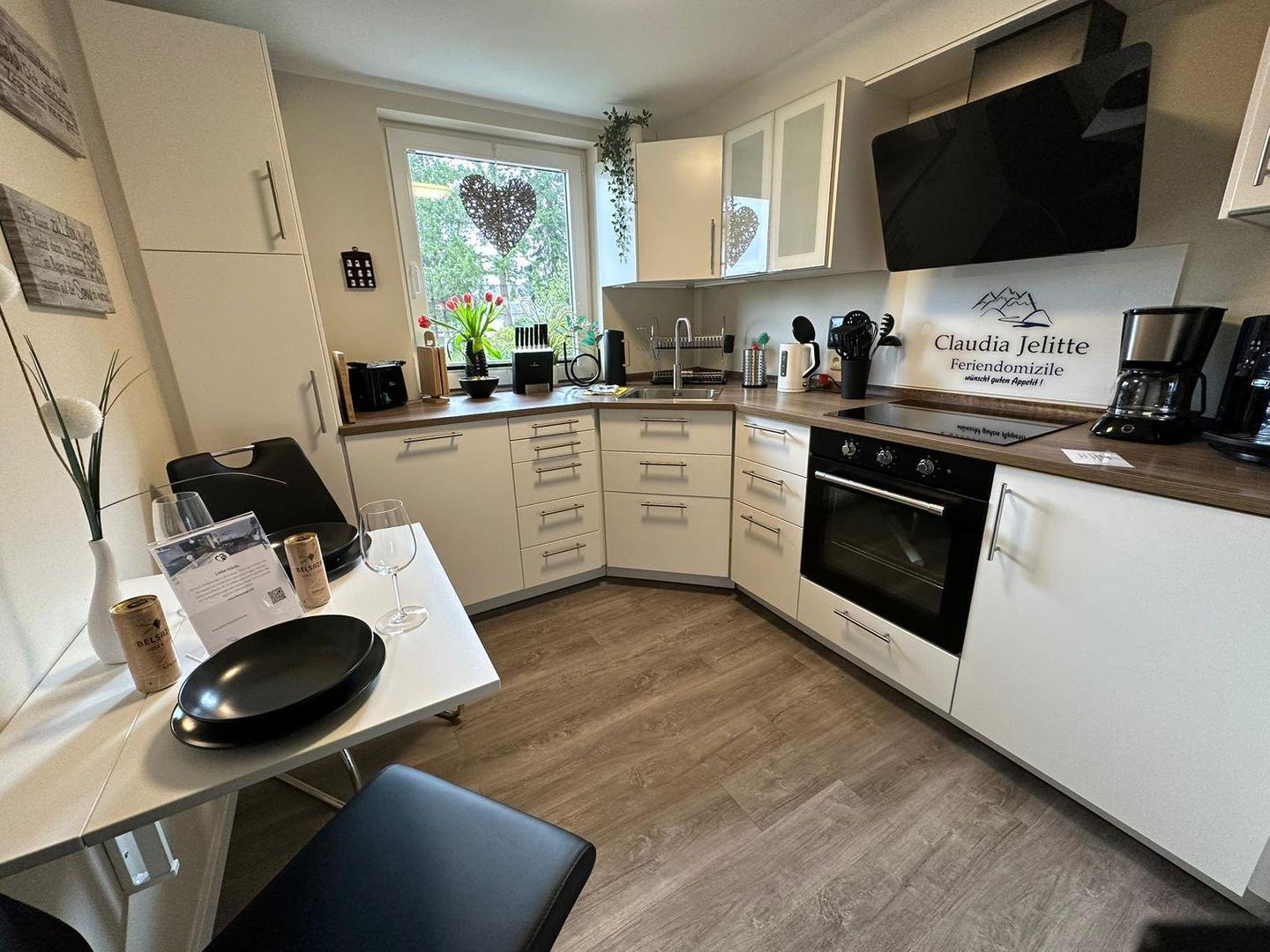 Die voll ausgestattete Küche lässt keine Wünsche offen. Hier finden Sie alles, was Sie für die Zubereitung köstlicher Mahlzeiten benötigen: einen Herd, Backofen, Geschirrspüler, Kühlschrank und sogar ein Kaffee-Vollautomat und einen Toaster. Zudem stehen Ihnen Küchenutensilien und Gewürze zur Verfügung, sodass Sie gleich nach Ihrer Ankunft mit dem Kochen beginnen können.