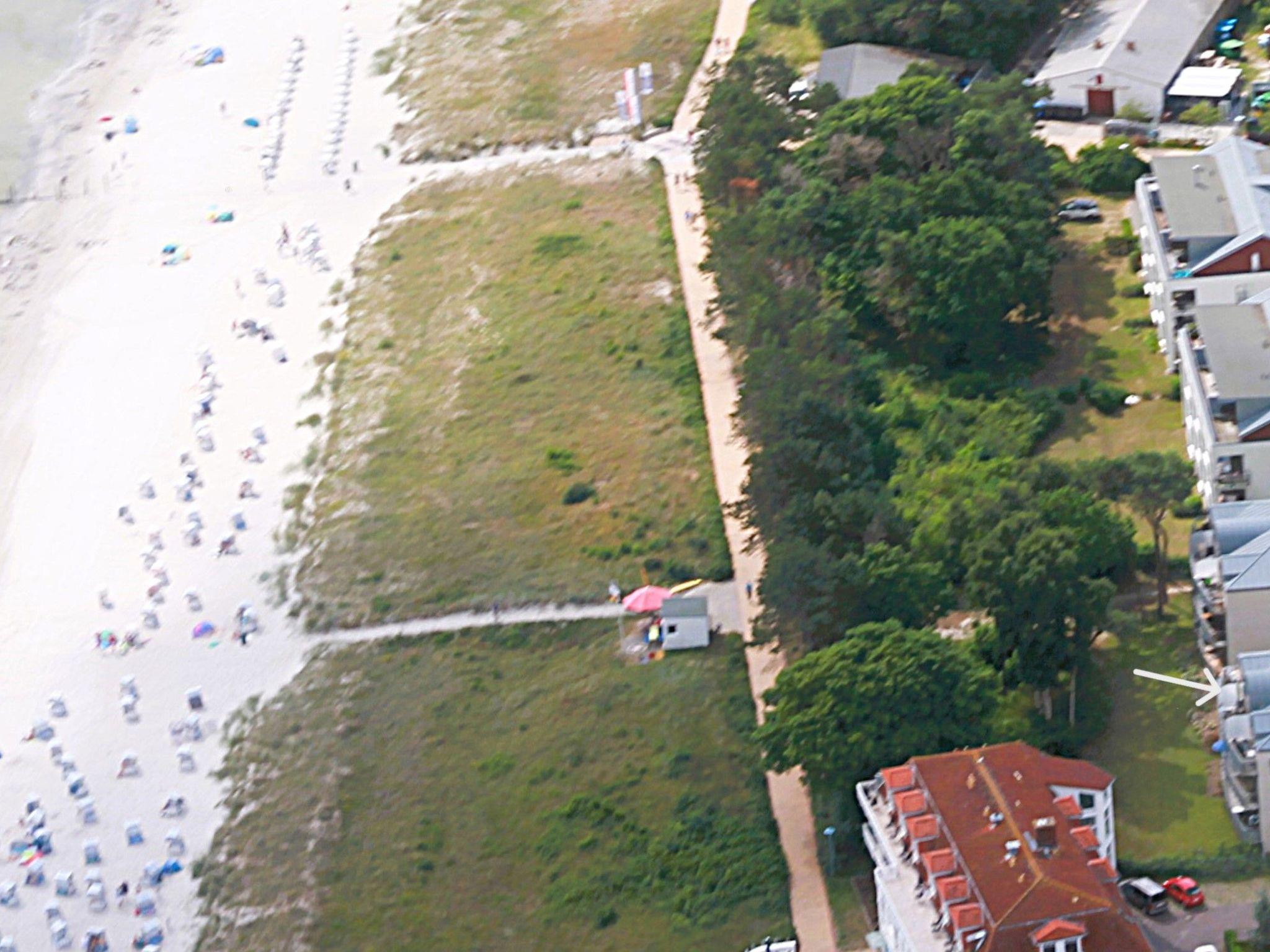 The outdoor area of the holiday flat impresses above all with its private beach access, which takes you directly to the enticing beach in just a few steps. Enjoy the proximity to the sea and the opportunity to take a refreshing dip in the Baltic Sea at any time or simply relax on the beach.