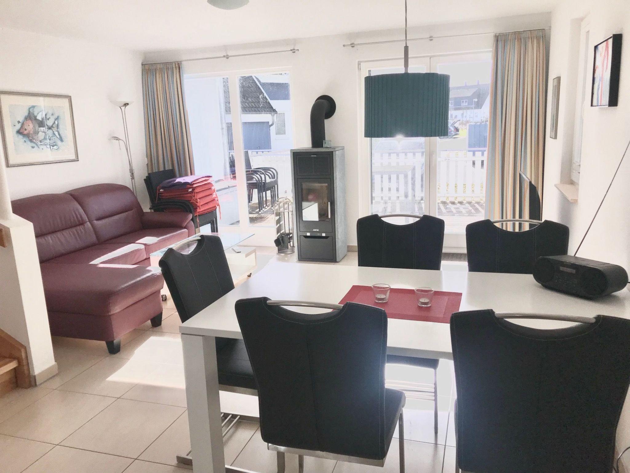 The outdoor area invites you to linger in the fresh air with a terrace and an idyllic garden, which is available for communal use. For self-catering, the holiday home is equipped with modern amenities such as a ceramic hob, a filter coffee machine, a kettle and a dishwasher. Guests also have sole use of a washing machine in the property. The fireplace in the living area makes for cosy evenings, while the hot water is powered by environmentally friendly solar energy.