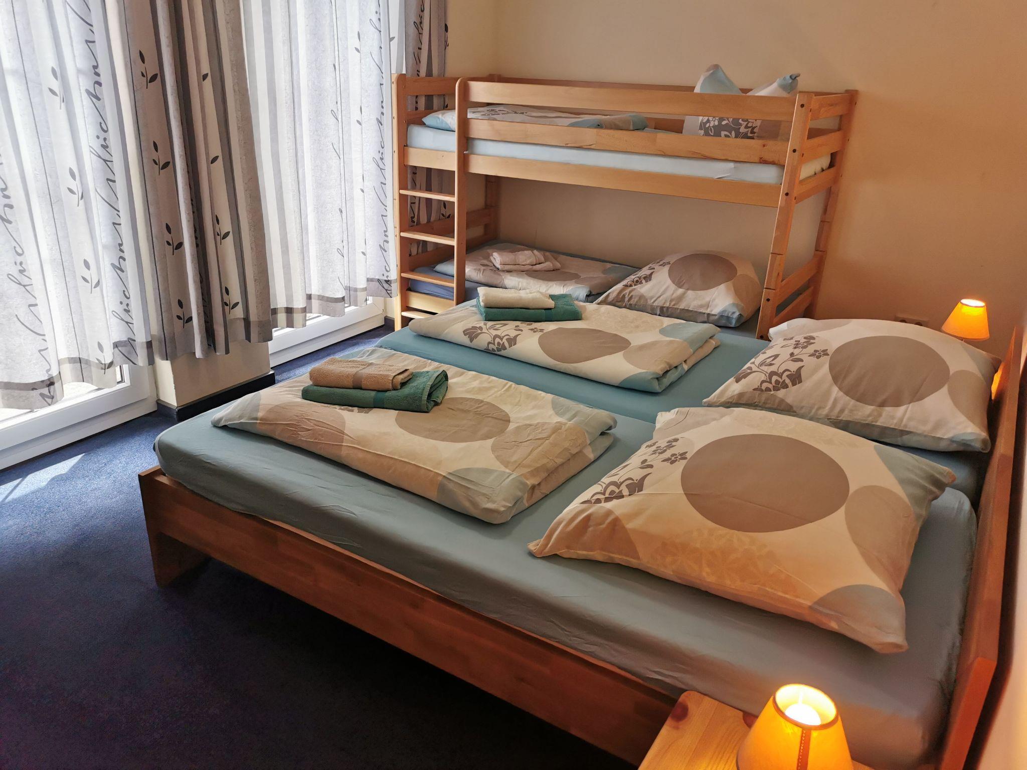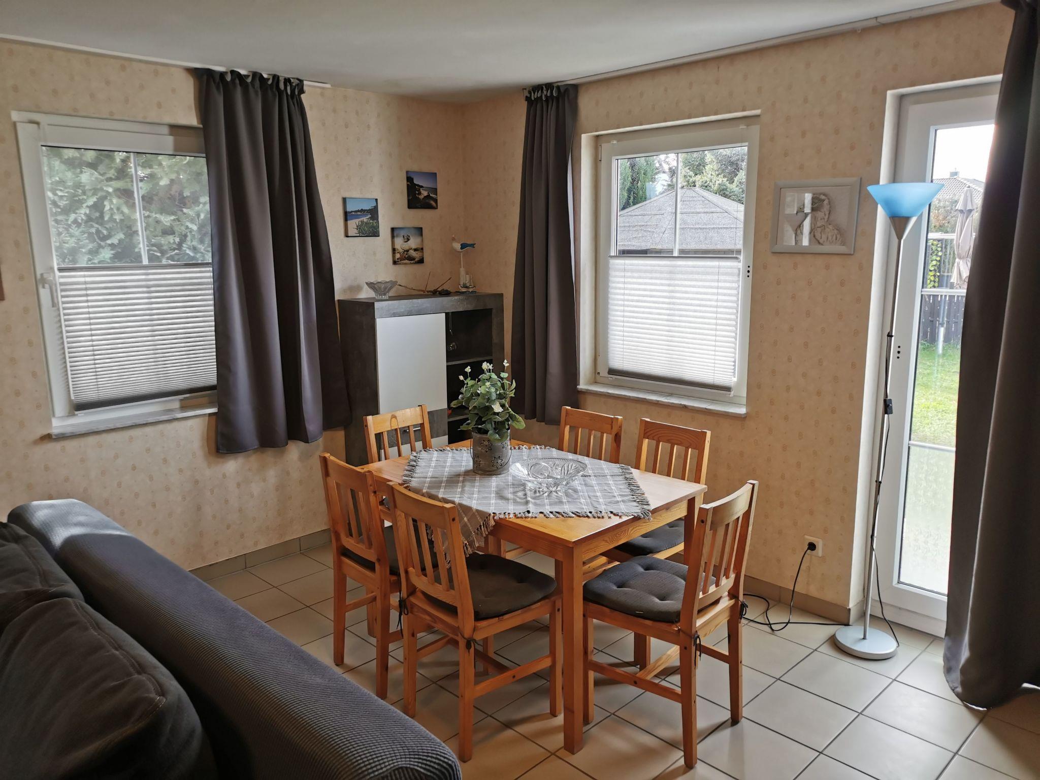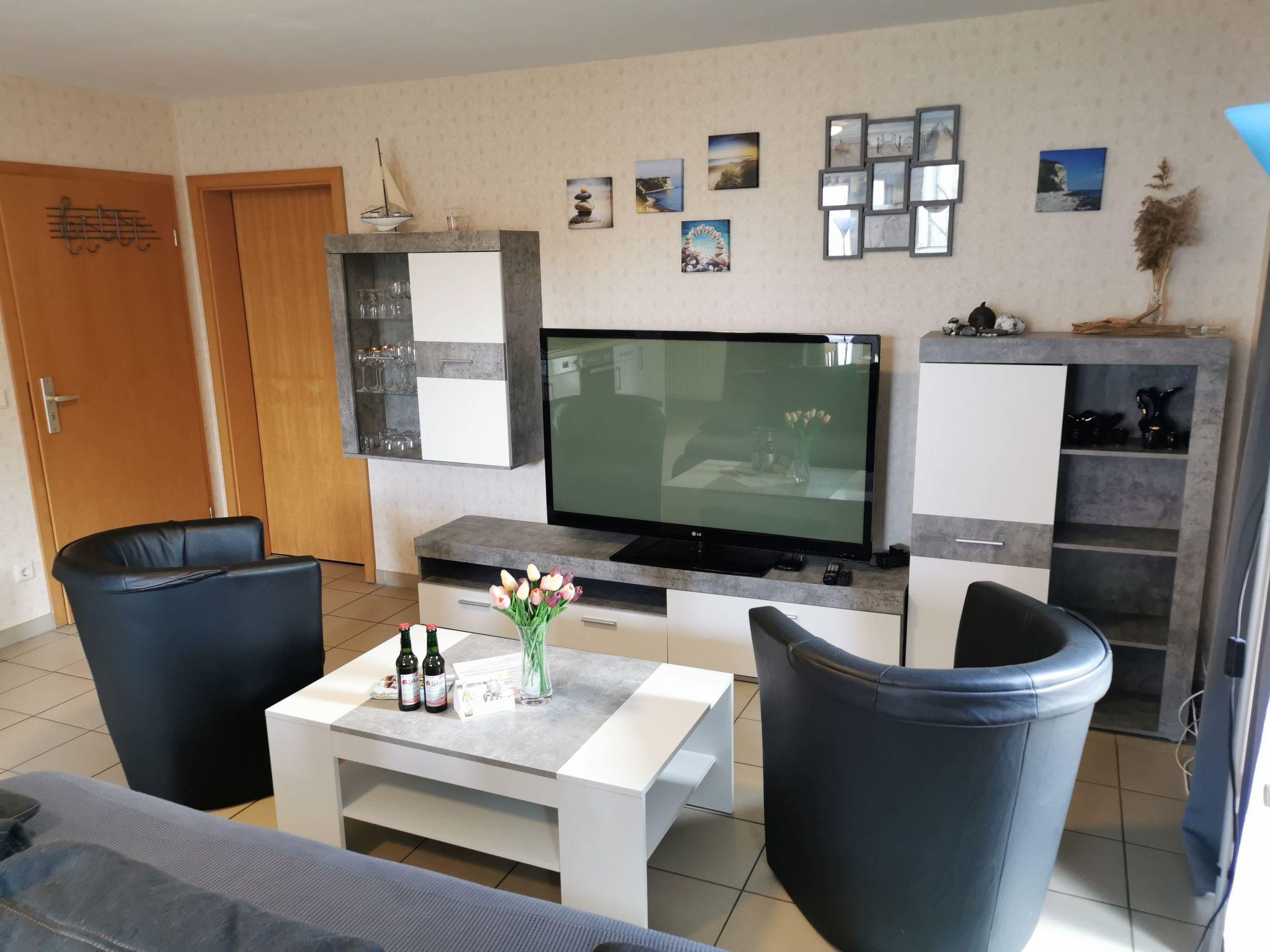 The flat is on the ground floor, about 60 m² in size, and consists of the following rooms: A living area with terrace, satellite TV, double sofa bed, a fully equipped kitchenette with ceramic hob, oven, microwave, dishwasher, coffee machine and dining area; an adjoining bedroom with 1.80 double bed and a bunk bed, as well as an adjoining bathroom with shower and WC.
