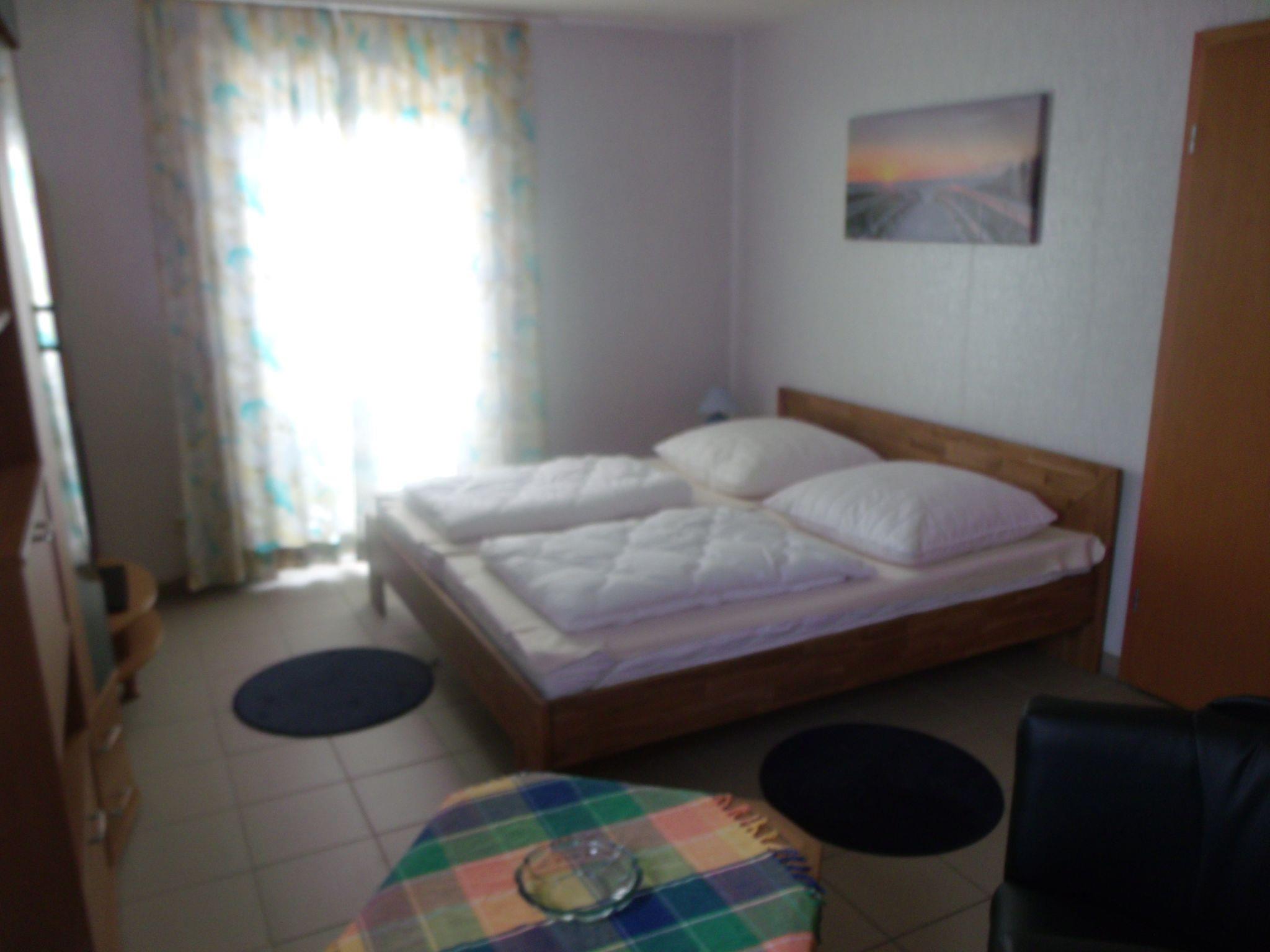 The building is surrounded by a large garden. All the holiday apartments have a kitchen unit with the usual appliances, a car parking space on the fenced site, a grill area, satellite TV and Wi-Fi. This one-room apartment is on the ground floor, providing a double bed 180cm wide, satellite TV, a kitchen unit with a two-ring ceramic hob, microwave, coffee machine, kettle, toaster, a dining corner, two armchairs, as well as a bathroom with a shower, washbasin and WC. A cot and highchair are available.