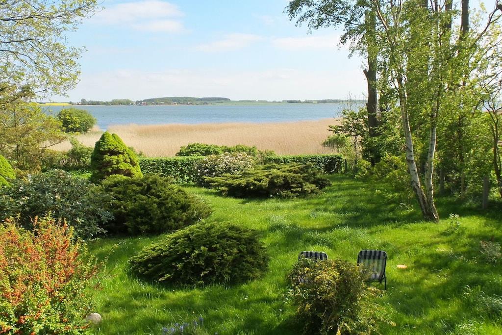 Geheimtipp für Naturfreunde und Individualisten Das mit Reet gedeckte, gemütlich eingerichtete Ferienhaus befindet sich direkt am kleinen Hafen vom Breeger Bodden der ehemaligen Kamminer Fähre in idyllisch ruhiger Lage auf einem ca. 2500 m², liebevoll angelegten Gartengrundstück. Es ist für 4-5 Personen geeignet. Zum Ferienhaus gehört eine schöne Terrasse, ausgestattet mit Gartenmöbeln von der man einen wunderschönen Blick auf das Wasser hat. Eine Grillmöglichkeit besteht. Zufahrt zum Haus über einen naturbelassenen Feldweg. Im Ferienhaus befinden sich ein großer Wohn- und Essraum, eine kleine Einbauküche, eine Schlafempore, ein Schlafzimmer und ein Bad mit WC und Dusche. Zum Grundstück gehört ein eigener Bootssteg. 2 Fahrräder gehören ebenfalls zur Ausstattung. Hier finden Familie Erholung und Entspannung in wunderschöner Natur mit Sonnengarantie. Wohnzimmer mit gemütliche Couch und 2 Sessel, TV/ Sat (Flatscreen) und Kamin (kein Kaminholz vorhanden, erhältlich im Baumarkt Glowe), komplett ausgestatteter Küchenbereich mit, 4- Plattenherd (Ceranfeld), Minibackofen, Kühlschrank mit Gefrierfach, Mikrowelle und diversen Elektrogeräten, 2 Schlafzimmer mit jeweils ein Doppelbett im OG mit Boddenblick, Bad mit Dusche/ WC, Terrasse mit Gartenmöbel, Grillmöglichkeit besteht, 2500 qm großes umzäuntes Grundstück(Höhe 1,2 m) mit Liegewiese zum Relaxen “Erholung & Entspannung in wunderschöner Natur” direkt am Jasmunder Bodden mit eigenem Bootsliegeplatz , 2 Fahrräder inklusive, Einkaufsmöglichkeiten, Bäcker und Restaurant in Breege, vom ca. 2 km entfernten Hafen sind Ausflugsmöglichkeiten per Schiff zur Insel Hiddensee und zu den Störtebeker-Festspielen möglich, Segelschule, optimale Rad- und Wandermöglichkeiten, 2 PKW- Stellplätze auf dem Grundstück, Haustiere nach Absprache (Gebühr Euro 10,- pro Tag/ pro Haustier), schlechte Zufahrt zum Ferienquartier (naturbelassener Weg)! Das Seebad Breege-Juliusruh ist etwa 5km entfernt und bequem mit Fahrrad oder Auto erreichbar. In Breege befindet sich ein kleiner romantischer Hafen, wo man auch Seegelboote und Yachten mieten kann. In der kleinen Hafenräucherei gibt es täglich frischen Räucherfisch. In Juliusruh und der angrenzenden Schaabe findet man wunderschöne Badestrände mit sehr feinem Sand. Mit dem Fahrrad lässt sich die ganze Insel Rügen über ein Netz von Fahrradwegen erkunden. Der nahe Wieker Bodden bietet Surfen und Klitseglern bestes Terrain. Einkaufen kann man in Breege bei einem Bäcker und einem kleinen Einkaufsmarkt. Ein großer Supermarkt befindet sich in Altenkirchen. Rügen bietet ab er auch mit seinen bekannten Ostseebädern, Naturschutzgebieten und den Kreidefelsen sehr viel Abwechslung. Kleine Fischerdörfer wie z.B. Vitt bei Kap Arkona, alte Kirchen, Hünen- und Hügelgräber oder die Freilichtbühne in Ralswiek wollen erkundet sein. Das ganze Jahr über bietet die Insellandschaft Faszinationen und Erholung pur für jeden beim Wandern, Fahrradfahren, Segeln, Angeln, Reiten oder auch Bernsteinsuchen.