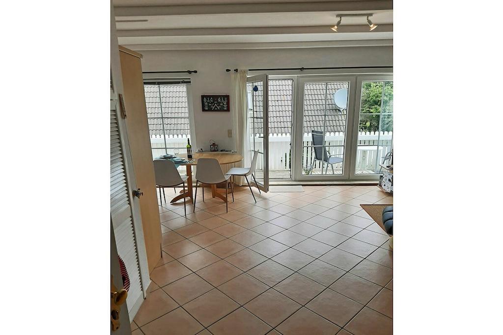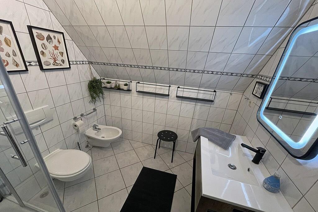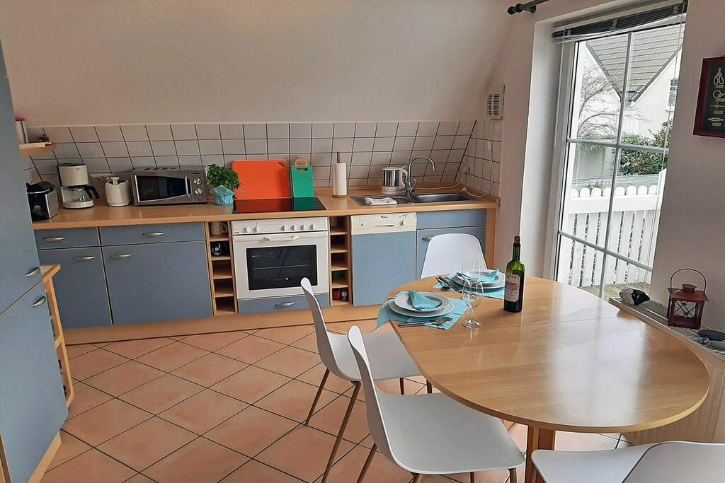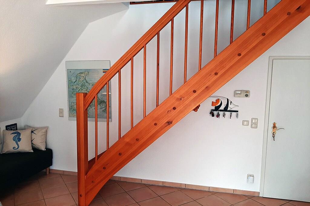 1. Etage: ? Moderner Wohn- Essbereich mit Balkonzugang und breiter Fensterfront, gemütliche Couch zum Ausziehen, TV/ Sat (Flatscreen), kostenfreies Internet (WLAN), Stereoanlage (Radio/CD), Gesellschaftsspiele für gemütliche Abende, offene komplett ausgestattete Einbauküche mit 4- Plattenherd (Ceranfeld), Backofen, Kühlschrank mit Gefrierfach, Geschirrspüler, Mikrowelle und diverse Elektrogeräte. Bad mit Dusche, WC, Bidet, Kindertoilettensitz und Haartrockner ? großer Balkon mit Tisch und zwei Balkonstühlen ? Hauswirtschaftsraum mit Waschmaschine, Wäscheständer, Bügeleisen 2. Etage: ? Schlafzimmer mit Doppelbett (180 x 200), klappbarer Schlafhocker (190 x 60), Kinderreisebett und Kleiderschrank Besonderes: Herzlich willkommen in unserer schönen und hellen Ferienwohnung “Morgenluft” Die ca. 60 qm große Wohnung über zwei Etagen ist komfortabel und modern eingerichtet.Sie befindet sich eingebettet zwischen Ostseestrand und Bodden, in direkter Nähe zu Feldern und Wiesen. Die ländliche Ruhe und die Natur bieten pure Erholung. Auf dem großen Balkon kann man morgens in der Sonne frühstücken und nach einem erholsamen Tag die Abendsonne genießen. Zum schönen Strand in Juliusruh sind es nur wenige Minuten mit dem Fahrrad (900 m auf Nebenstraßen). Aber auch zum Hafen Breege mit mehreren Einkehrmöglichkeiten ist es nicht weit (500 m). Von hier ist ein Abstecher per Schiff nach Hiddensee bzw. zur Bühne in Ralswiek möglich. Unsere Ferienwohnung ist eine Nichtraucherwohnung, Haustiere sind nicht erwünscht. Da wir selbst einen kleinen Sohn haben, sind wir auch auf kleine Gäste eingestellt. Für diese steht ein Kinderreisebett bereit. Eine Waschmaschine ist vorhanden. Ihre Fahrräder können in einem abschließbaren Abstellraum untergebracht werden. Der Fahrradverleih ist gleich um die Ecke. Ihr Auto parkt kostenlos in der Nähe der Ferienwohnung. Der nahegelegene breite Sandstrand ist für Kinder sehr gut geeignet – das Wasser ist flach und warm. Es gibt optimale Radfahr- und Wandermöglichkeiten. Im Hafen Breege befindet sich eine Segelschule. Für Ihren erholsamen Urlaub hier in Breege steht damit nichts mehr im Wege.