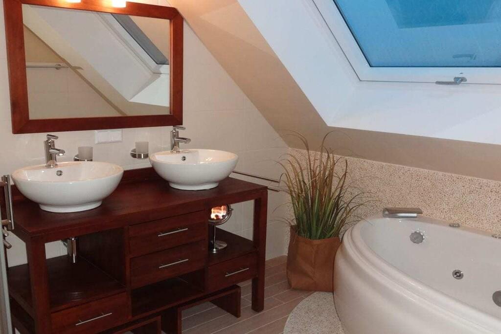 Stueetage: (entre(, , varme, klimaanlæg), Køkken(, , , tekøkken, kogeplade, kaffemaskine, ovn, grill, mikrobølgeovn, opvaskemaskine , køleskab, fryser, varme, klimaanlæg, ), stue / spisestue(, Fjernsyn(digital), spisebord, varme, klimaanlæg, barnestol), soveværelse(, dobbeltseng, Fjernsyn(digital), varme, klimaanlæg), badeværelse(, toilet, bruser, håndvask, varme, klimaanlæg), pulterkammer(, tørretumbler, vaskemaskine, strygebræt, strygejern, tørreskab)) På 1. etage: (soveværelse(, dobbeltseng, Fjernsyn(digital), tremmeseng, varme, klimaanlæg), soveværelse(, enkeltseng, enkeltseng, varme, klimaanlæg), badeværelse(, toilet, badekar, bruser, håndvask, varme, klimaanlæg), loungerum(sauna, hottub)) , , , , , Internetadgang, Internetadgang, Førstehjælp, tørretumbler, vaskemaskine, varme, terrasse(, havemøbler, solstole), terrasse(, havemøbler, solstole), parkering, strygebræt, strygejern, tørreskab