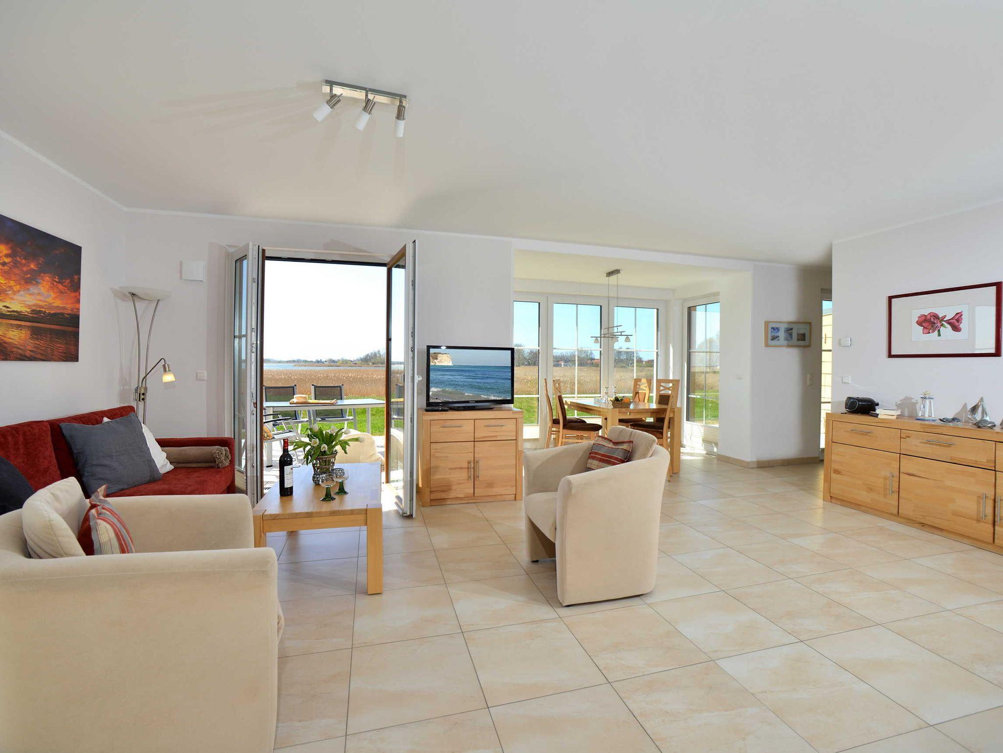 Die Ferienwohnung Ostseebrise befindet sich im Erdgeschoss eines Reetdachhauses in idyllischer Lage unmittelbar hinter dem Deich des Ostseebades Breege/Juliusruh auf Nordrügen. Die großzügigen und hellen Räume sind exklusiv und komfortabel eingerichtet. Von der Terrasse genießen Sie einen traumhaften Blick über den Breeger Bodden.In der kalten Jahreszeit genießen Sie die kuschlige Wärme des Kamins.