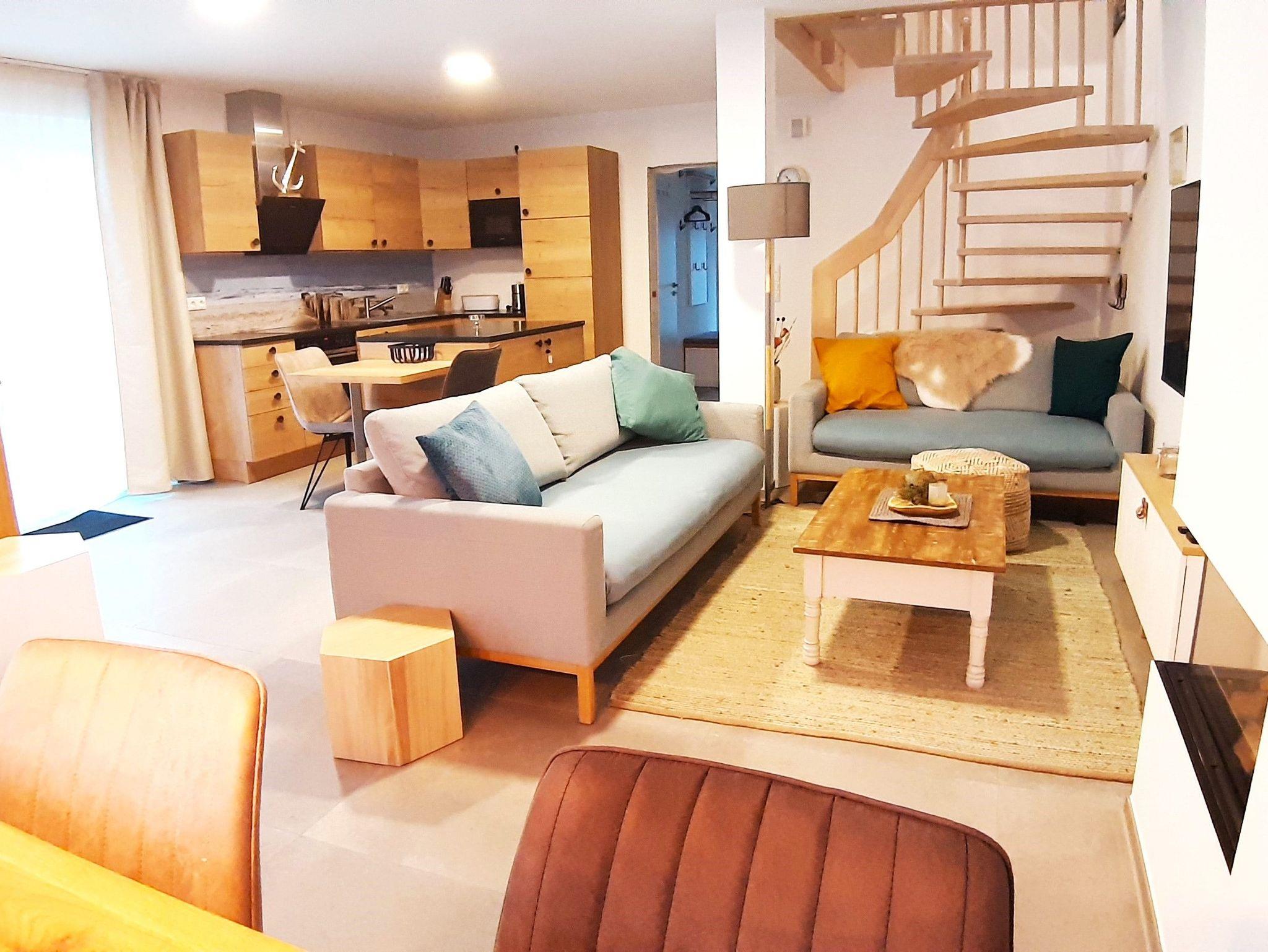 Unser Ferienhaus Deich Michel ist nigelnagelneu und mit allem ausgestattet, was das Herz begehrt. In drei Schlafzimmer finden bis zu 6 Personen ein Plätzchen. Der Wohnbereich mit angeschlossener Terrasse und integrierter Küche beherbergt außerdem einen Kamin, umgeben von gemütlichen Sitzmöbeln. Der große Esstisch lädt zu Geselligkeit mit der Familie und Freunden ein. Die Sauna im Obergeschoss eignet sich besonders an kalten Tagen zum Relaxen und Durchwärmen.