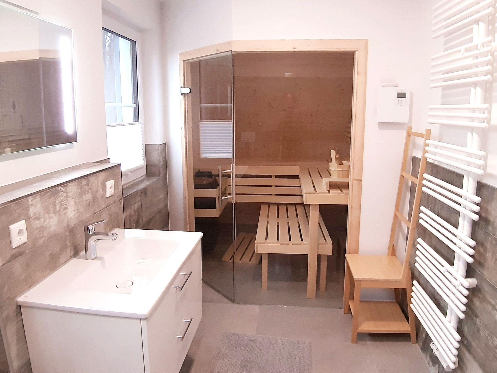 • 3 Bäder (1 Bad mit Dusche im EG, 1 Wellnessbad mit Dusche und Sauna im 1. OG, 1 Bad mit Dusche im 2. OG)