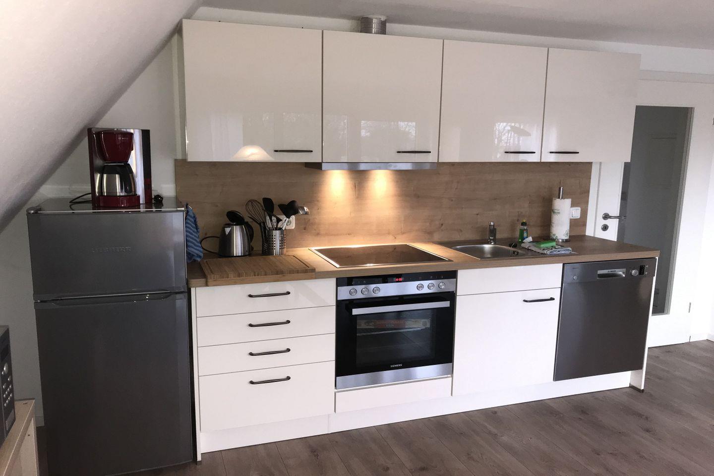 KÜCHE // offene Küche, 4-Platten Ceranherd, Spülmaschine, Kühlschrank mit Gefrierfach, Backofen, Mikrowelle, Toaster, Wasserkocher, Kaffeemaschine, reichlich Besteck, Geschirr und Küchenutensilien ++
