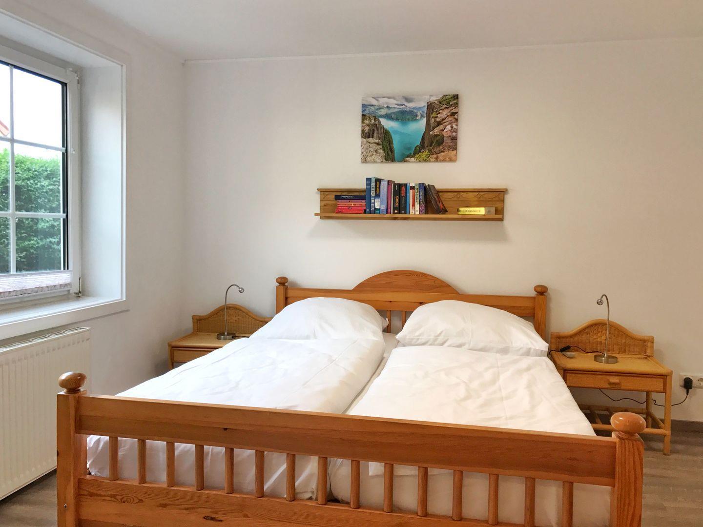 Die Ferienwohnung "Fjorde" befindet sich im Erdgeschoss des Haupthauses. Die Wohnung verfügt über ein Wohnzimmer mit Schlafcouch für 2 Personen, aus welchem Sie einen schönen Blick auf den Breeger Bodden und die vorbeifahrendenden Schiffe genießen. Außerdem gibt es ein Schlafzimmer mit Doppelbett, eine separate Küche und ein Bad (mit Dusche /WC). Zur Wohnung gehört ein Pkw-Stellplatz auf dem Grundstück.