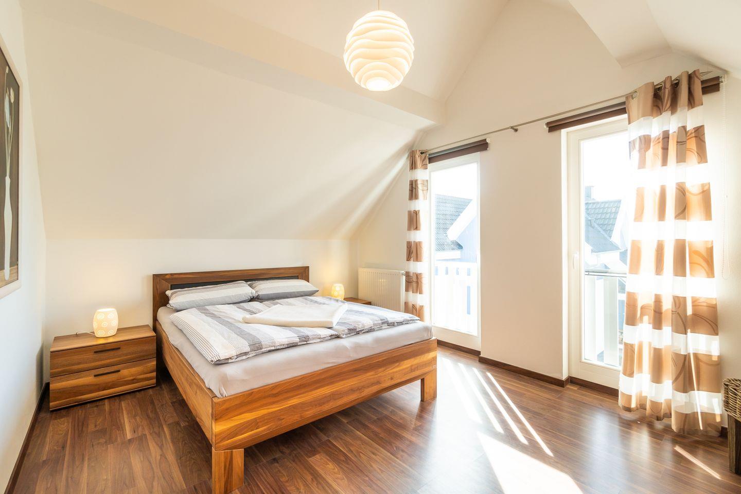Im “Karhunmökki” heißt es nicht “Moin”, sondern “Moi” – wie der Finne sagt. Diese charmante Doppelhaushälfte im skandinavischen Stil bietet auf zwei Etagen ein behagliches Urlaubsdomizil für bis zu 4 Personen und ein Kleinkind. Ein Kinderreisebett (ohne Bettzeug) und ein Hochstuhl steht für die kleinen Entdeckerinnen bereit. Die komplett ausgestattete Küche mit modernen Einbaugeräten lässt keine Wünsche offen und macht gemeinsames Kochen zum Vergnügen. Der helle Wohnbereich, geschmackvoll eingerichtet und mit einem Kaminofen ausgestattet, lädt zu gemütlichen Abenden voller angeregter Konversation ein. Für Erholung sorgen zwei Schlafräume mit bodentiefen Fenstern und komfortablen Doppelbetten sowie zwei stilvolle Bäder. Eine Infrarot-Sauna lässt das Wohn- und Lebensgefühl der Ostsee-Nachbarn aus dem hohen Norden aufkommen. Im Außenbereich erwartet Sie eine große, möblierte Holzterrasse – herrlich zum entspannten Träumen in der Abendsonne.
