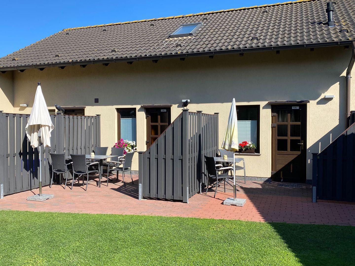 An der Ferienwohnung befindet sich ein kleiner Garten zur Mitnutzung und eine eigene Terrasse mit Gartenmöbeln, Grill und Sonnenschirm.