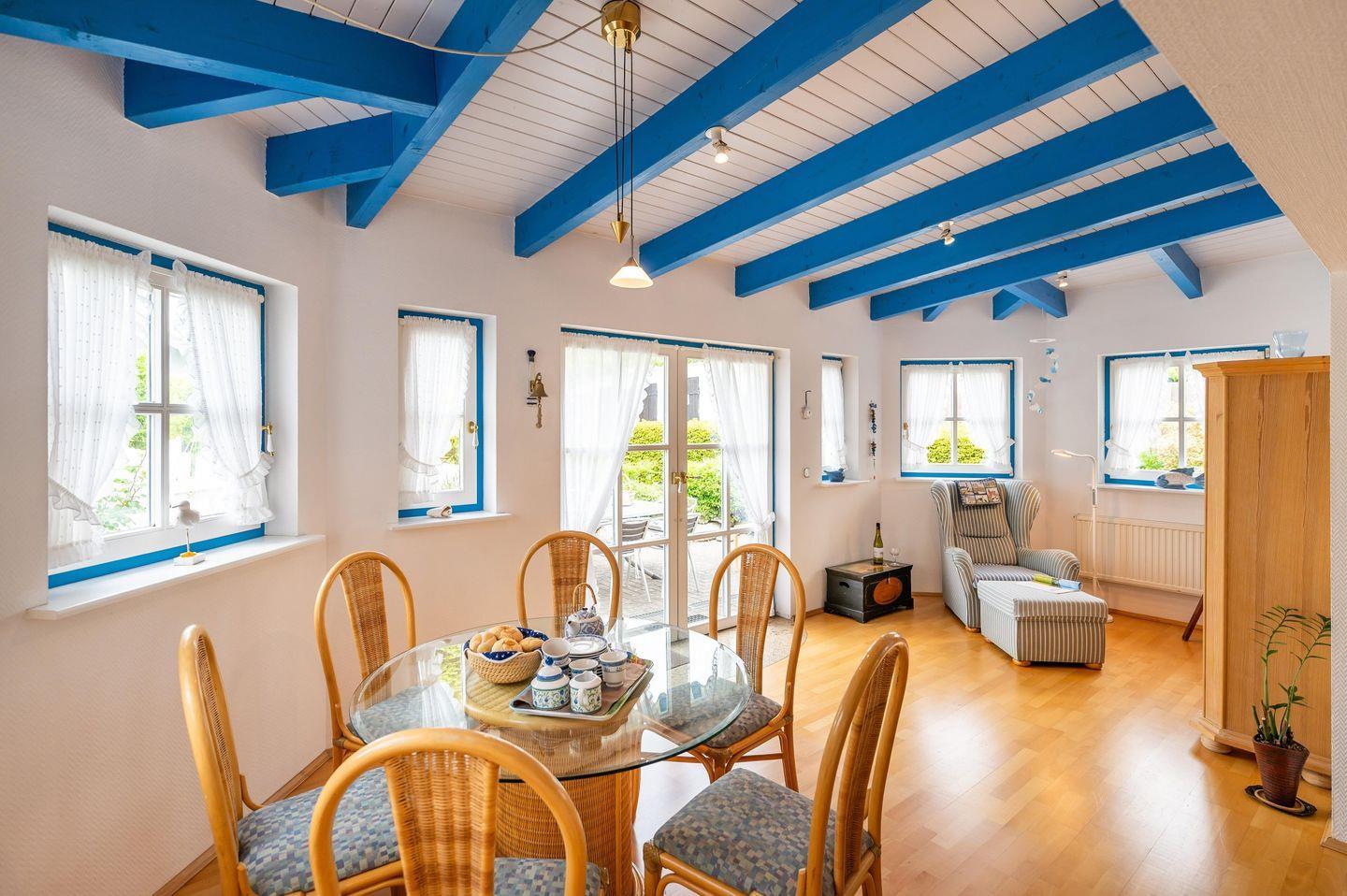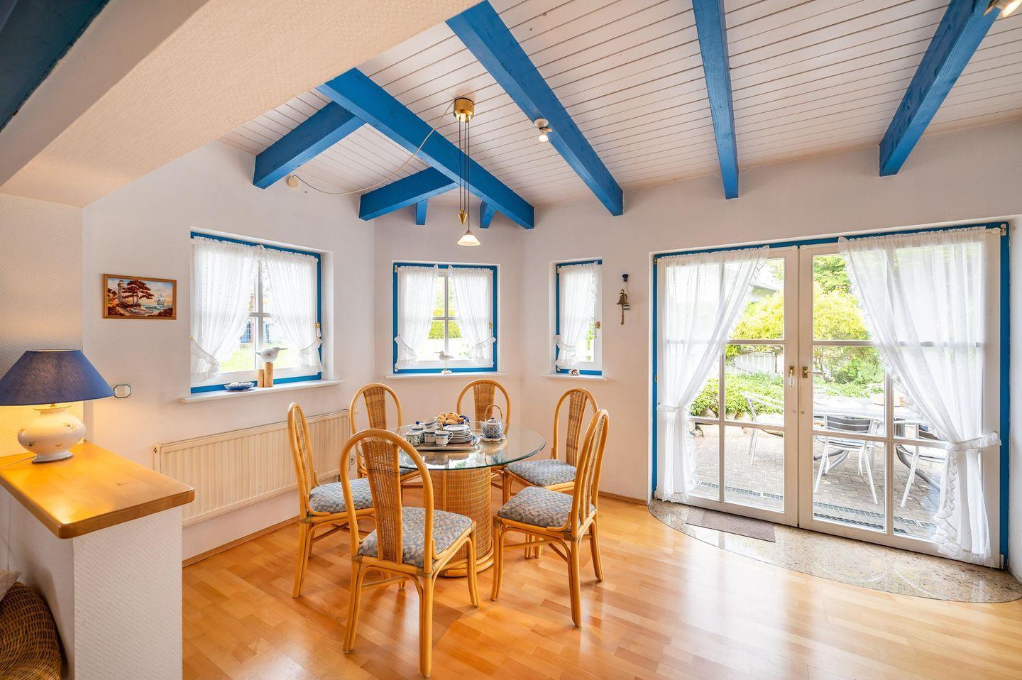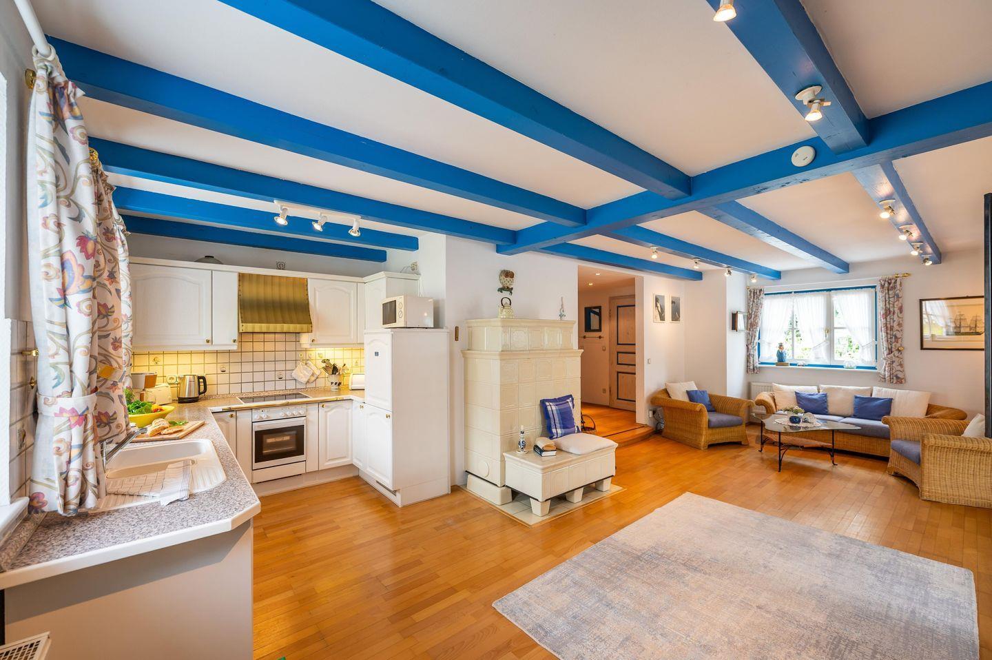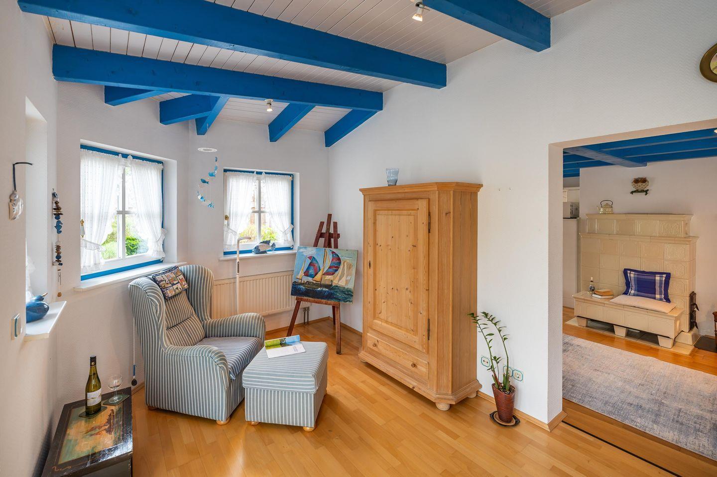 Genießen Sie auf 100 m² historischen Charme und modernen Komfort – ideal für bis zu 5 Personen. Das frisch renovierte Kapitänshaus bietet 3 Schlafzimmer, 2 Bäder, einen lichtdurchfluteten Wohnbereich mit Wintergarten und Kachelofen sowie eine voll ausgestattete Küche. Die Terrasse mit Strandkorb und ein idyllischer Garten laden zum Entspannen ein. Nur 2 km vom Sandstrand entfernt und unmittelbar am Breeger Hafen gelegen, ist es der perfekte Ausgangspunkt für Erholung, Wassersport und Homeoffice.