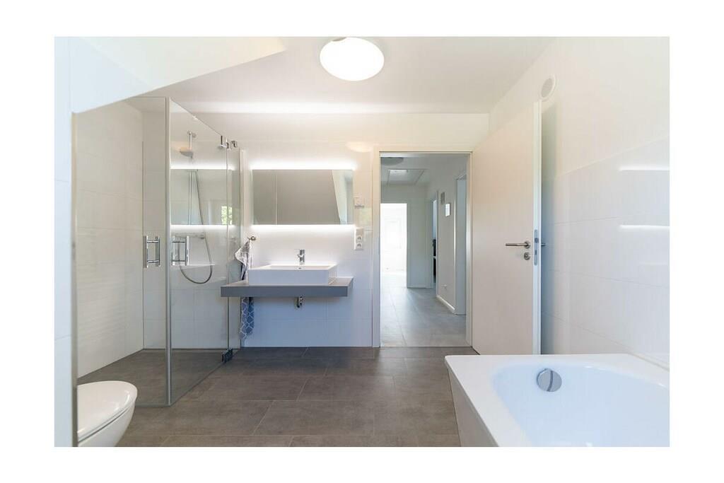 Erdgeschoss: großzügiger Wohn- Essbereich mit Kamin und Fußbodenheizung, gemütliche Couchlandschaft, kostenfreies Internet (WLAN), Smart-TV/ Sat, Radio/ CD, Gesellschaftsspiele und Bücher für gemütliche Abende, komplett ausgestattete Einbauküche mit 4-Plattenherd (Ceranfeld), Backofen, Mikrowelle, Kühlschrank mit großem Gefrierfach, Geschirrspüler und diversen Elektrogeräten, 1. Badezimmer mit bodengleicher Dusche, Sauna mit Stimmungslicht, Waschbecken und WC, Hauswirtschaftsraum mit Waschmaschine und Wäscheständer, Kinderreisebett und Kinderhochstuhl vorhanden Obergeschoss: alle 3 Schlafzimmer mit Doppelbett (Matratze je 90 x 200) und Kleiderschrank, 1. und 2. Schlafzimmer sind mit einem TV (Flatscreen) ausgestattet, 2. Badezimmer mit Badewanne und bodengleicher Dusche/ WC Außenbereich: Terrasse mit Gartenmöbeln, 2 Liegestühle, Sonnenschirm und Strandkorb, Grillmöglichkeit besteht (Grill vorhanden), abschließbarer Fahrradschuppen Urlaub, Spaß und Erholung im schöne Ferienhaus „Meerzeit“ – direkt am historischen Kurpark von Breege – Das gemütliche Ferienhaus „Meerzeit“ ist liebevoll eingerichtet. Das Grundstück mit ca. 300 qm und Terrasse lädt zum Entspannen ein. Es gibt Fußbodenheizung im gesamten Haus, Fliegengitter und Außenjalousien. Waschmaschine (ohne Gebühr) und Wäschespinne steht Ihnen zur Verfügung. Das Ferienquartier „Meerzeit“ ist ein Nichtraucherhaus. 2 PKW- Stellplätze befinden sich direkt am Haus. Abstellmöglichkeiten (abschließbar) für Fahrräder sind vorhanden. Bis zum 10 Kilometer langen Ostseestrand Schaabe sind es nur ca. 350 m. Ca. 2 km entfernt in Altenkirchen finden Sie einen Netto, das Kaufhaus „Stolz“, Edeka und einen Getränkemarkt. Restaurants und Radverleih sind in der Nähe. Vom Breeger-Hafen sind Ausflugsmöglichkeiten per Schiff zur Insel Hiddensee, Boddenfahrten, Kranichfahrten und zu den Störtebeker-Festspielen. Optimale Rad- und Wandermöglichkeiten um die schöne Insel zu erkunden, runden das Angebot ab (Fahrradverleih im Ort vorhanden). Haustiere mit Rücksicht auf Allergiker leider nicht gestattet!