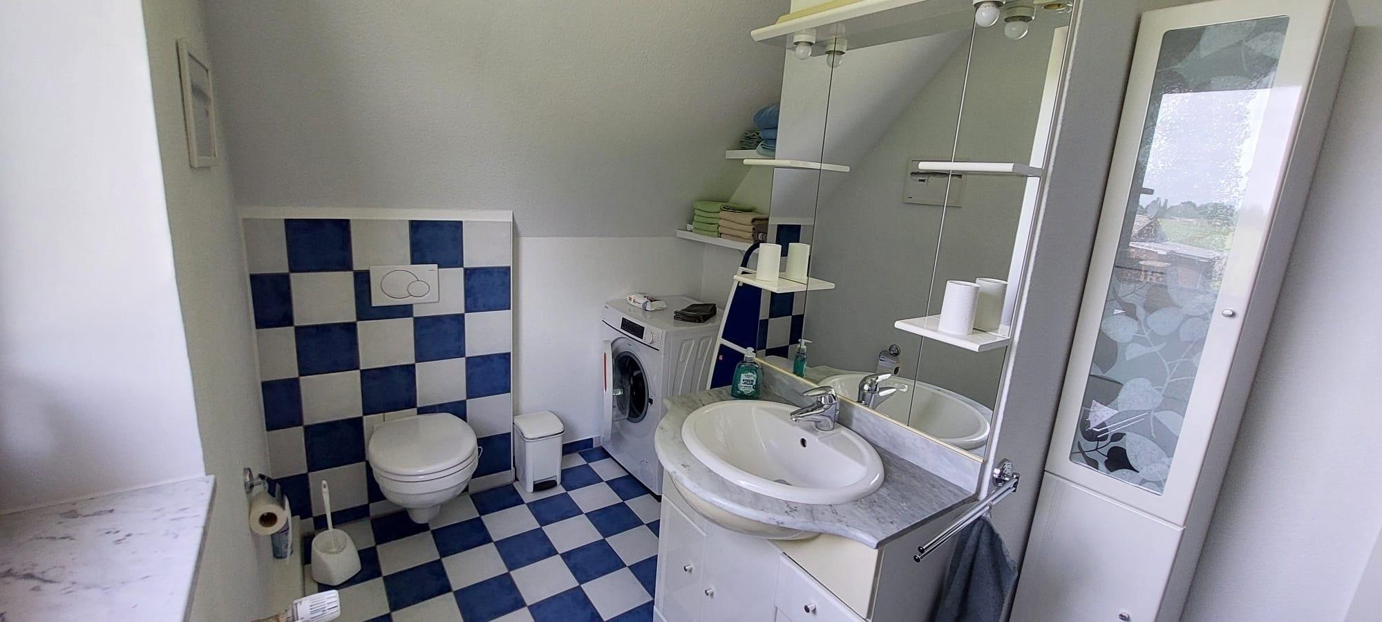 Es erwartet Sie eine moderne, liebevoll eingerichtete Wohnung im Obergeschoss mit zwei Schlafzimmern, einer Küche mit kleinem Essplatz, einem geräumigen Wohnzimmer mit einem großen Essplatz, ein Duschbad mit Waschmaschine und ein kleiner Abstellraum.