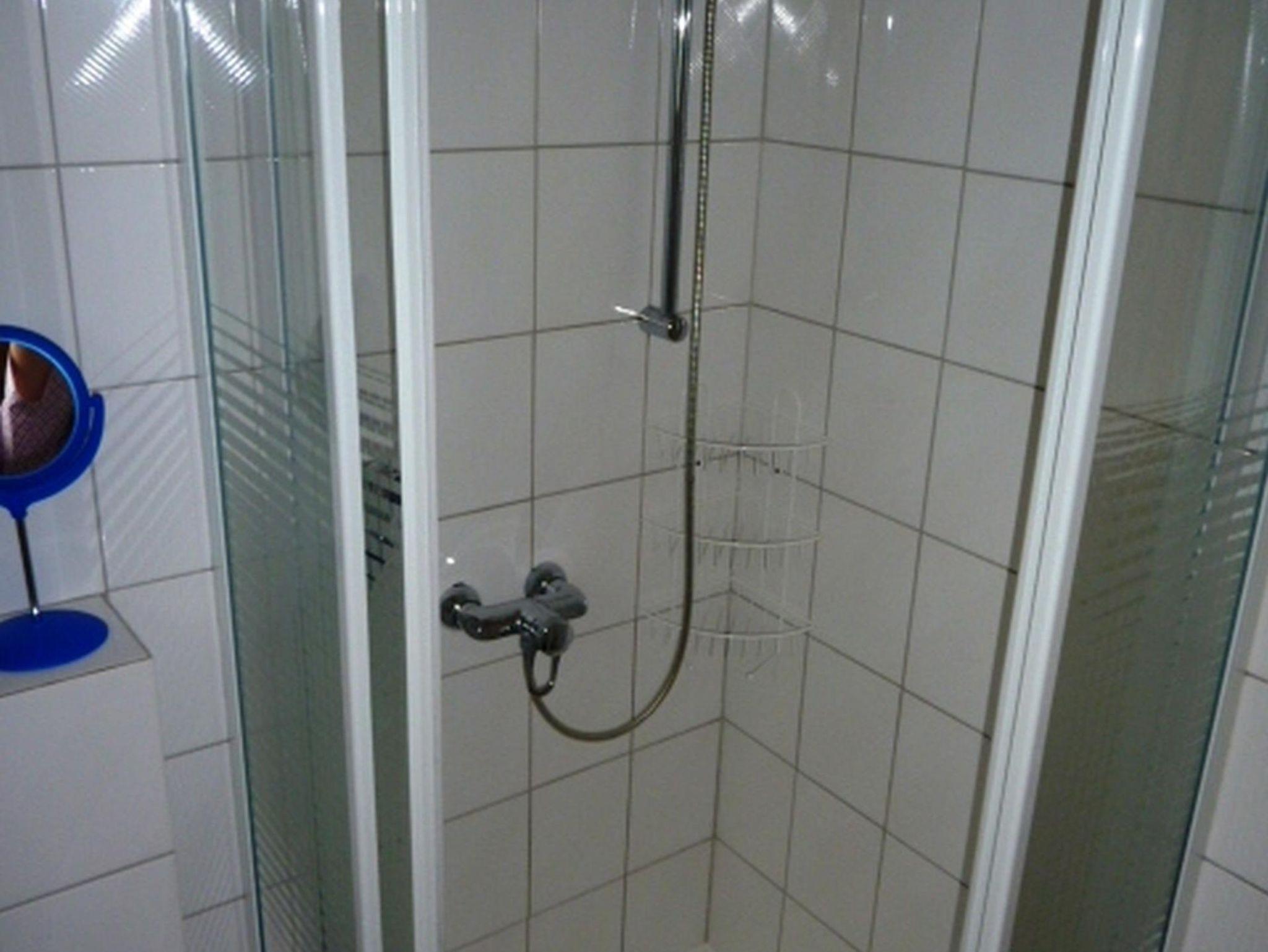 Das Bad ist ausgestattet mit Dusche, WC, Fön und Handtüchern.