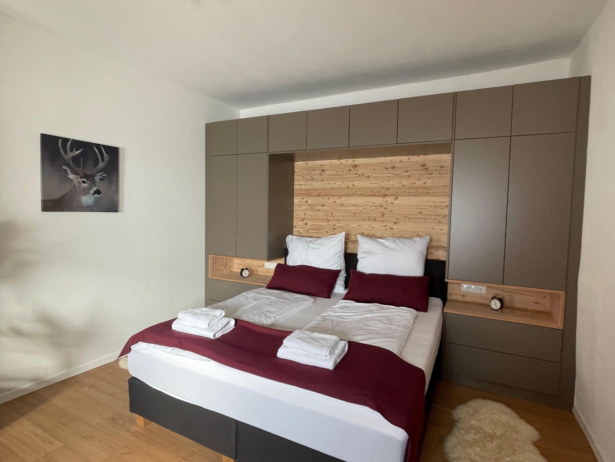 Die neu renovierte Ferienwohnung wurde mit großzügigem Inventar ausgestattet. Beide Schlafräume verfügen über ein Doppelbett sowie einem eigenen TV-Gerät. Ein Kinderbett kann auf Anfrage gerne zugestellt werden.