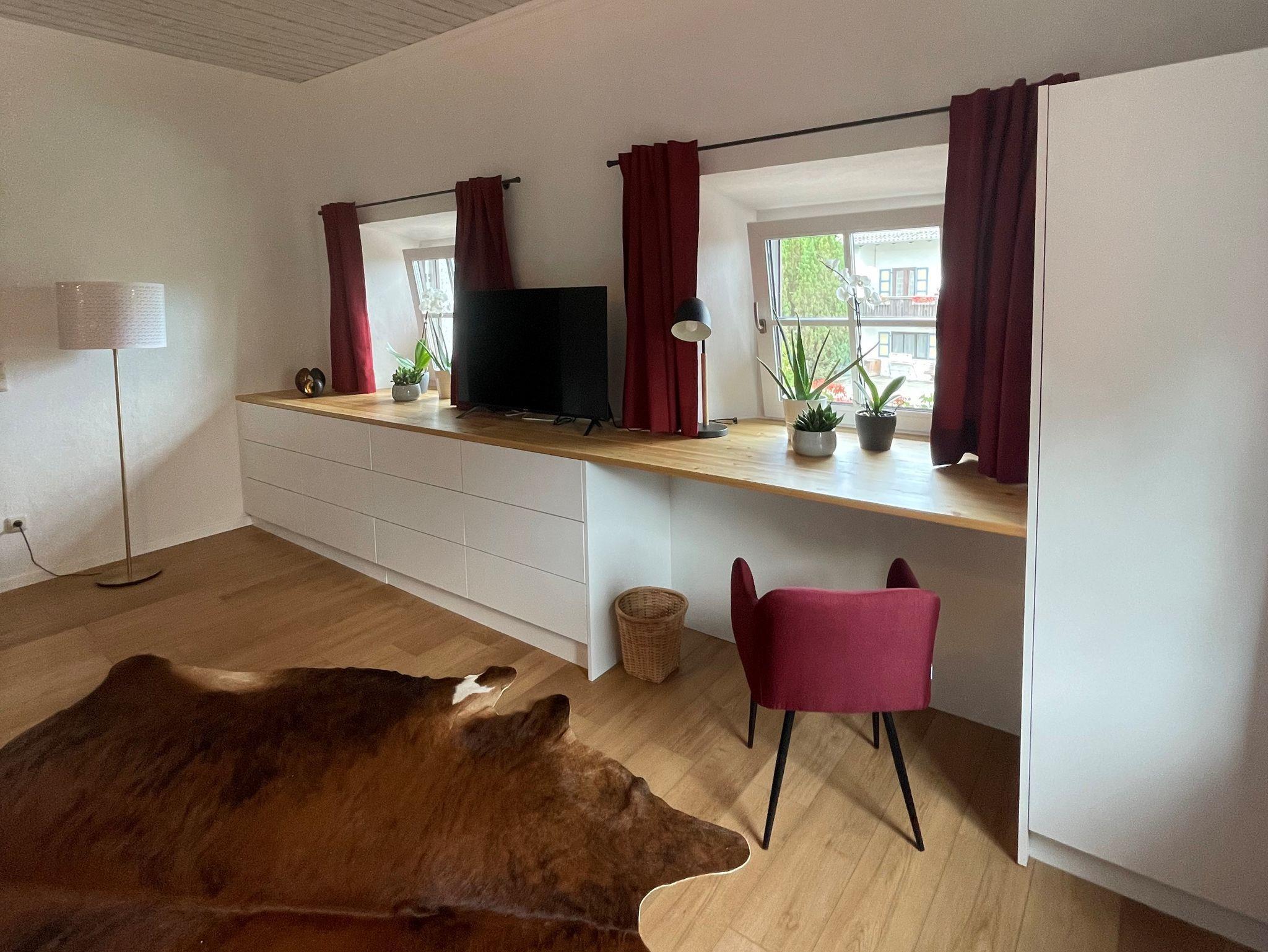 Die neu renovierte Ferienwohnung wurde mit großzügigem Inventar ausgestattet. Beide Schlafräume verfügen über ein Doppelbett sowie einem eigenen TV-Gerät. Ein Kinderbett kann auf Anfrage gerne zugestellt werden.