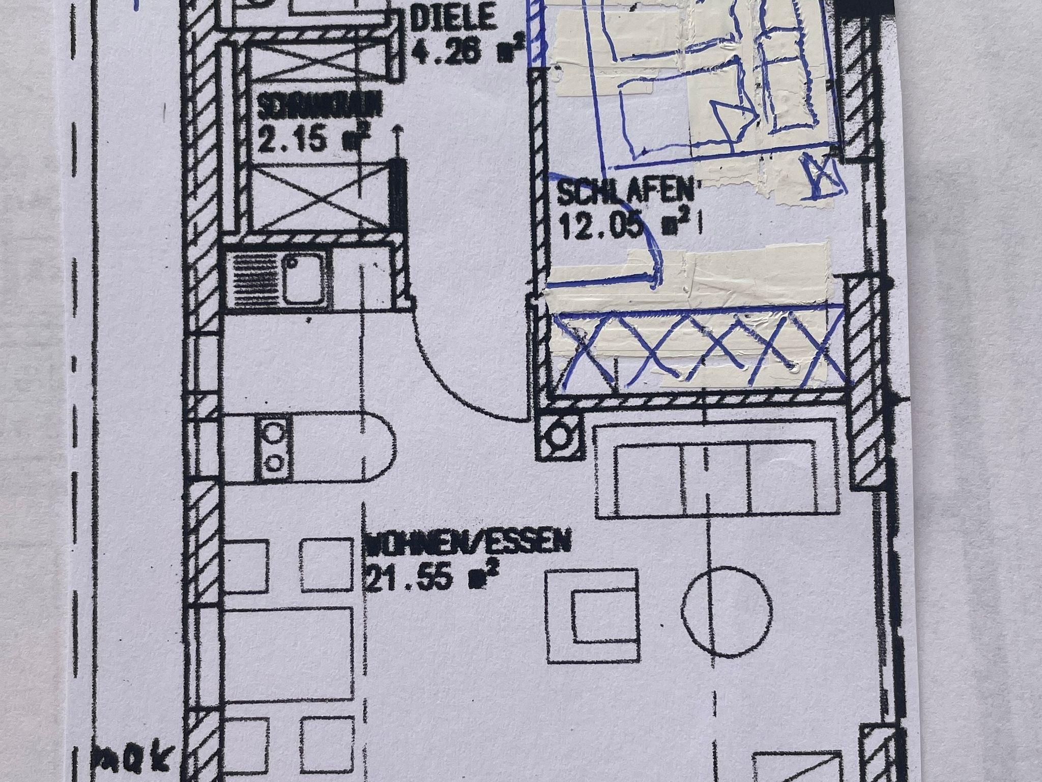 Wohnküche ( 21,5 qm) mit Wohnbereich, Essbereich, Küchenbereich mit Theke; kleine Schreibecke mit Steckdose für Laptop, Flachbild-Fernseher, individuell steuerbare Fußbodenheizung, Klimaanlage;