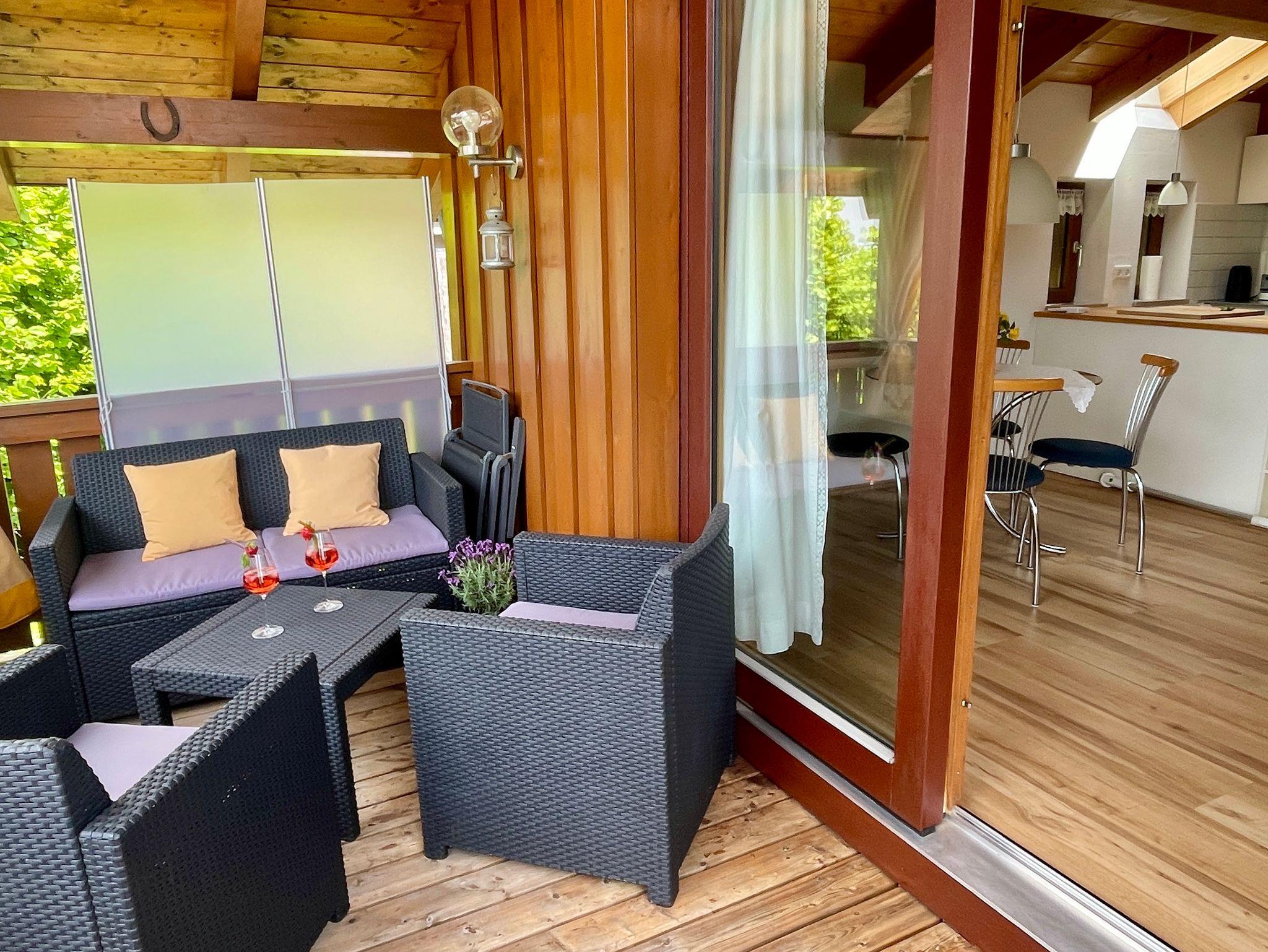 Die neu renovierte familiengeführte Ferienwohnung befindet sich in der ersten Etage mit großem Westbalkon in ruhiger Ortsrandlage, obwohl es zum Dorfzentrum mit Bushaltestelle,Dorfweiher und Kirche nur 500m sind.