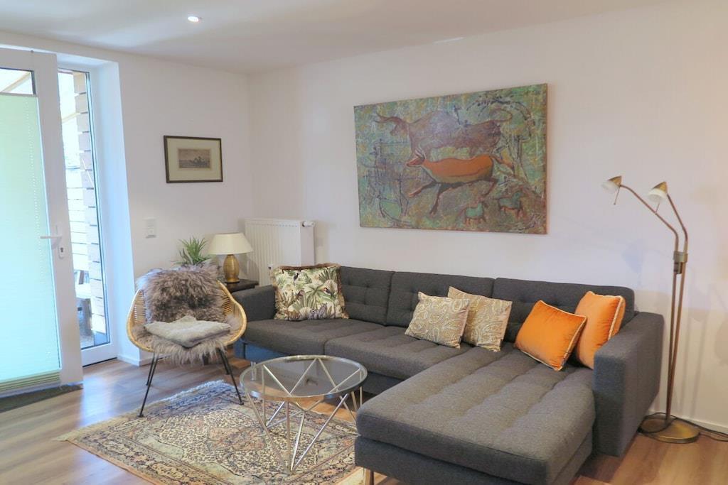 Exclusief vakantieappartement, elk met 2 slaapkamers, badkamer, apart toilet, Florex dennenhout verzorgingsproducten in de badkamer, moderne inbouwkeuken, 2 WLAN-tv's, overdekt terras, barbecue. Horren. In 2020 nieuw gerenoveerd en gebouwd volgens bouwbiologische principes. Chiemsee op ongeveer 500 m afstand.