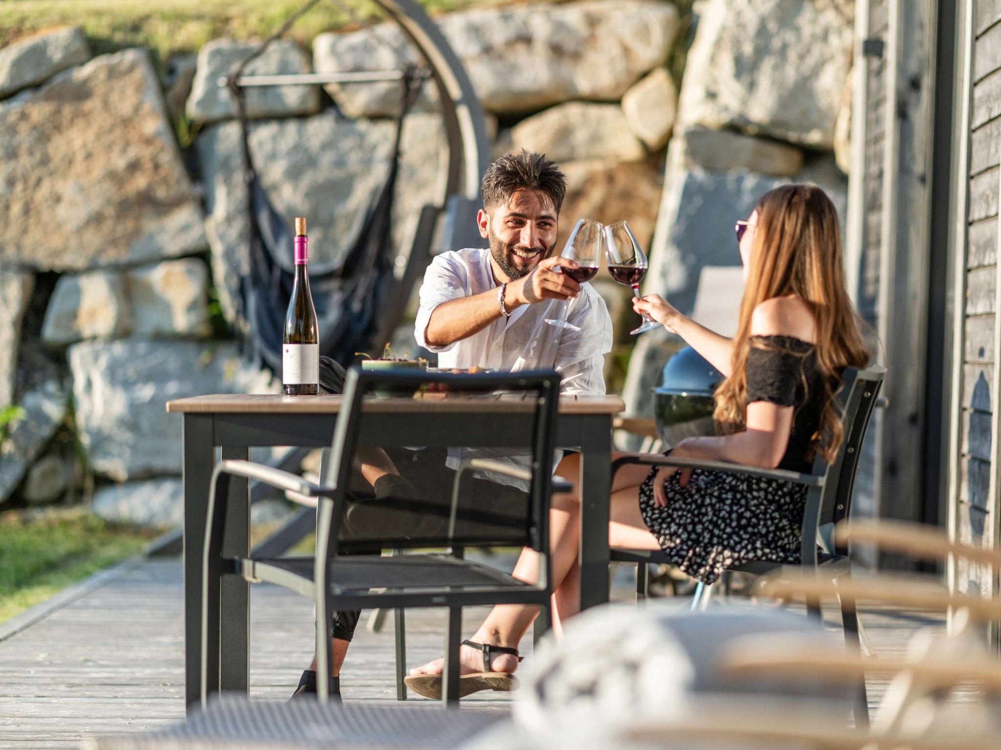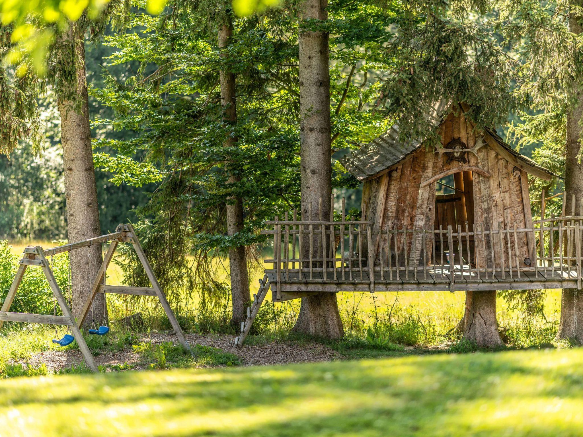 The outdoor area invites you to linger on the spacious terrace, where you can relax on high-quality garden furniture under a large parasol. Further facilities include a private barbecue, a campfire area and a hammock, which provide the perfect conditions for cosy evenings. Children will enjoy the small playground, while the pond and a fruit and herb garden invite you to explore.