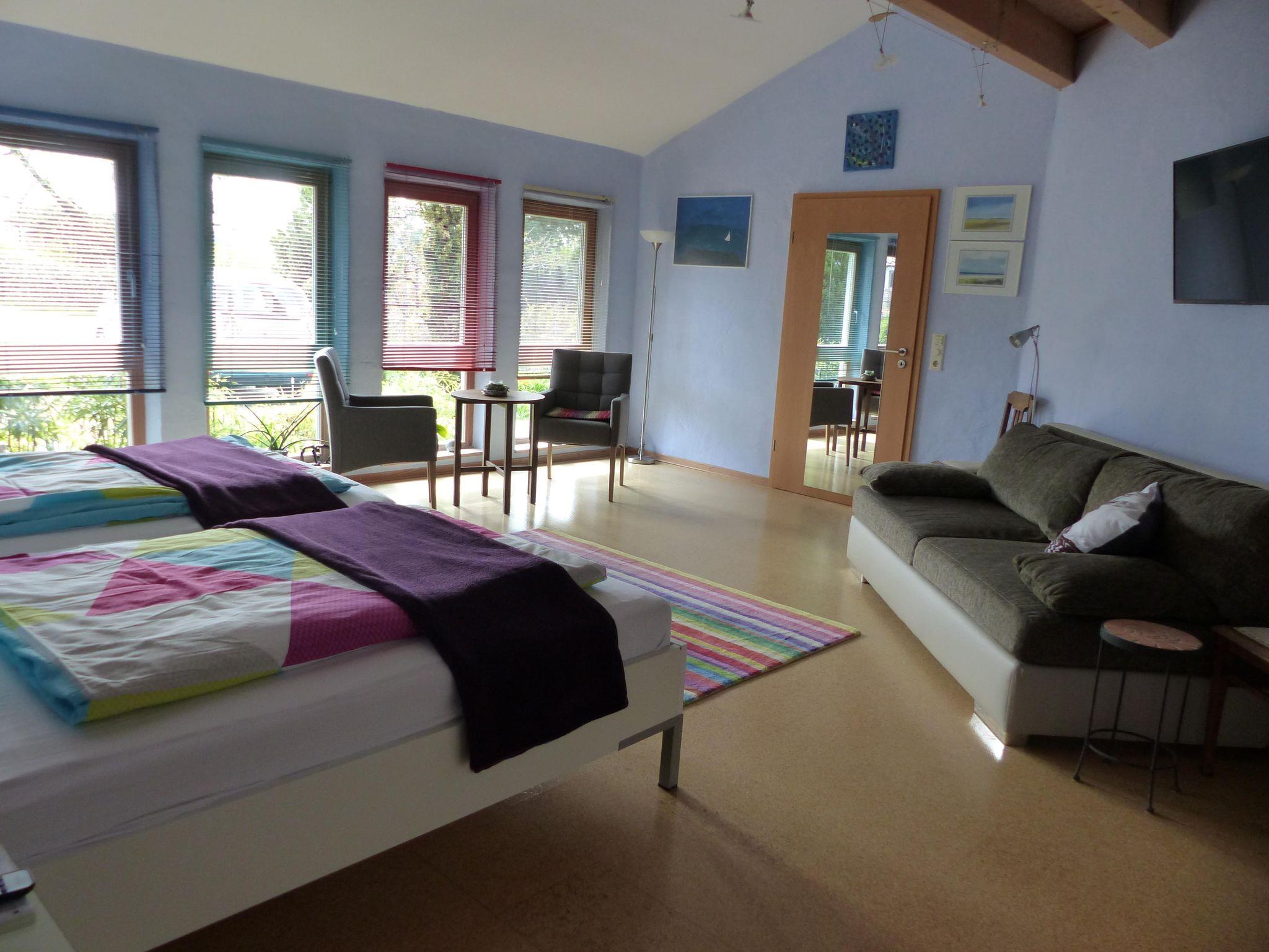Highlight sind der Schwimmteich und die Außensauna, die Nutzung ist für unsere Gäste kostenfrei! Der Schwimmteich lockt nicht nur im Sommer sondern auch in der kühlen Jahreszeit, wenn Sie die Feuersauna im Garten nutzen. Auf einem Rundgang durch den verwunschenen Naturgarten, mit überwiegenden heimischen Sträuchern und Blumen kann immer wieder etwas Neues entdeckt werden.