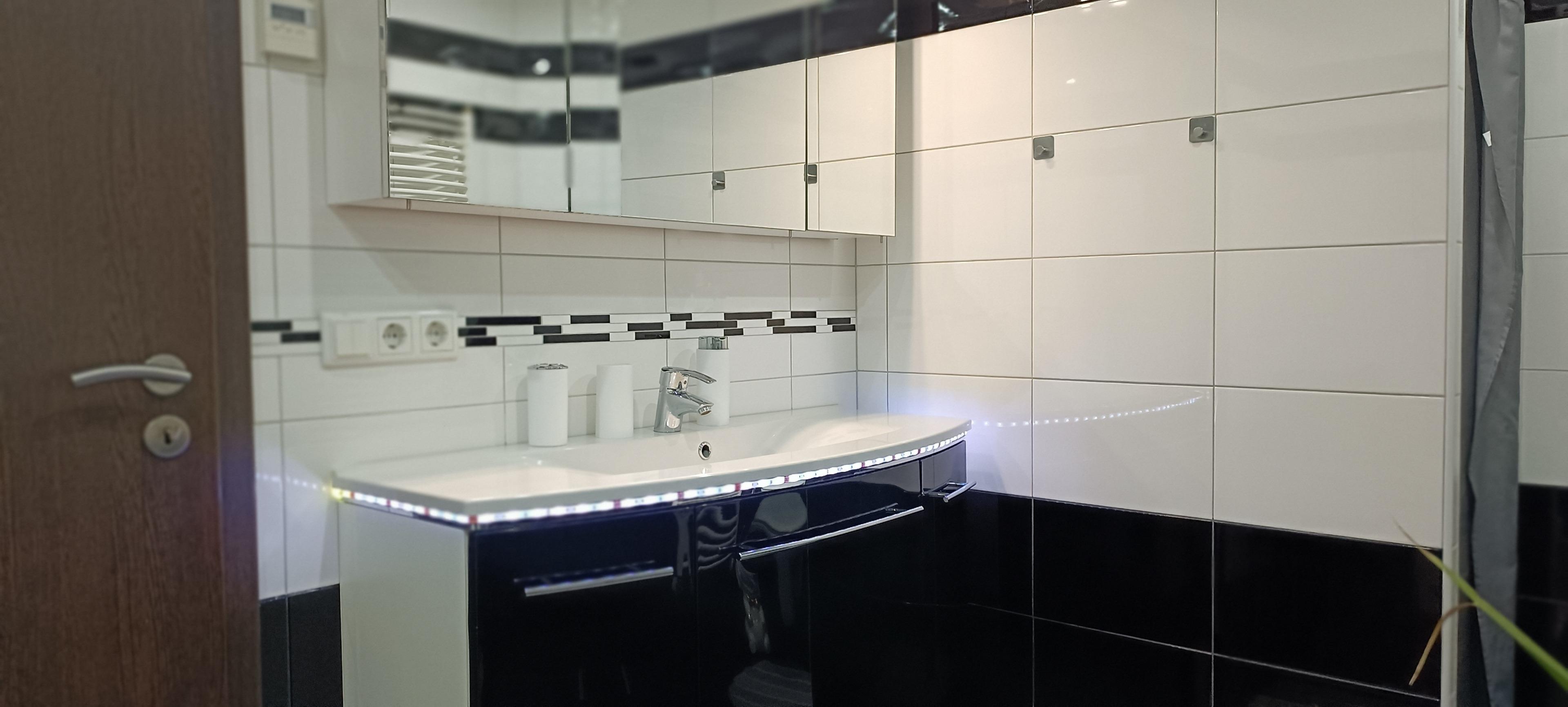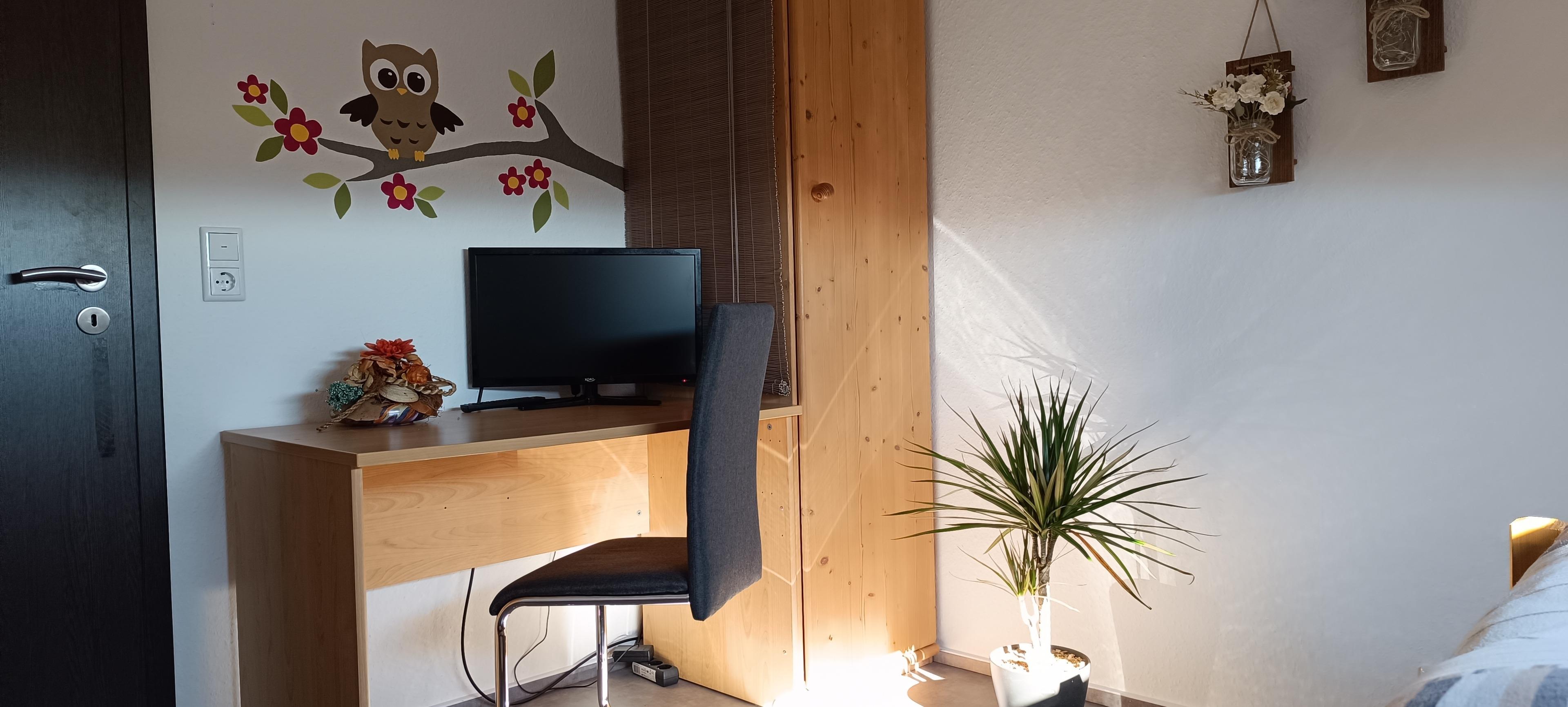 Unsere Ferienwohnung mit Klimaanlage liegt direkt am Werratalradweg und befindet sich im Dachgeschoss unseres Wohnhauses. Sie ist für bis zu 4 Erwachsene geeignet. Die Wohnungen ist mit viel Liebe eingerichtet und hat eine Größe von ca 80m.² Die Ferienwohnung verfügt über eine vollausgestattete Einbauküche ( Elektroherd, Backofen, Dunstabzugshaube, Kühlschrank, Geschirrspüler, Kaffeemaschine, Toaster, Wasserkocher, Mikrowelle), einen Wohnraum mit einem Eßplatz für 4 Personen einer Couch mit einer Schlafgelegenheiten für 1 Person. Es gibt ein Schlafzimmer mit Doppelbett und ein weiteres Zimmer mit einem Einzelbett. In der gesamten Wohnung stehen 3 Flachbildfernseher und WLAN zur Verfügung. Das Bad ist mit einer Toilette, einer Dusche und einer Badewanne ausgestattet. Bettwäsche, Geschirrtücher, Handtücher und Badetücher sind vorhanden. Die Endreinigung ist inklusive.