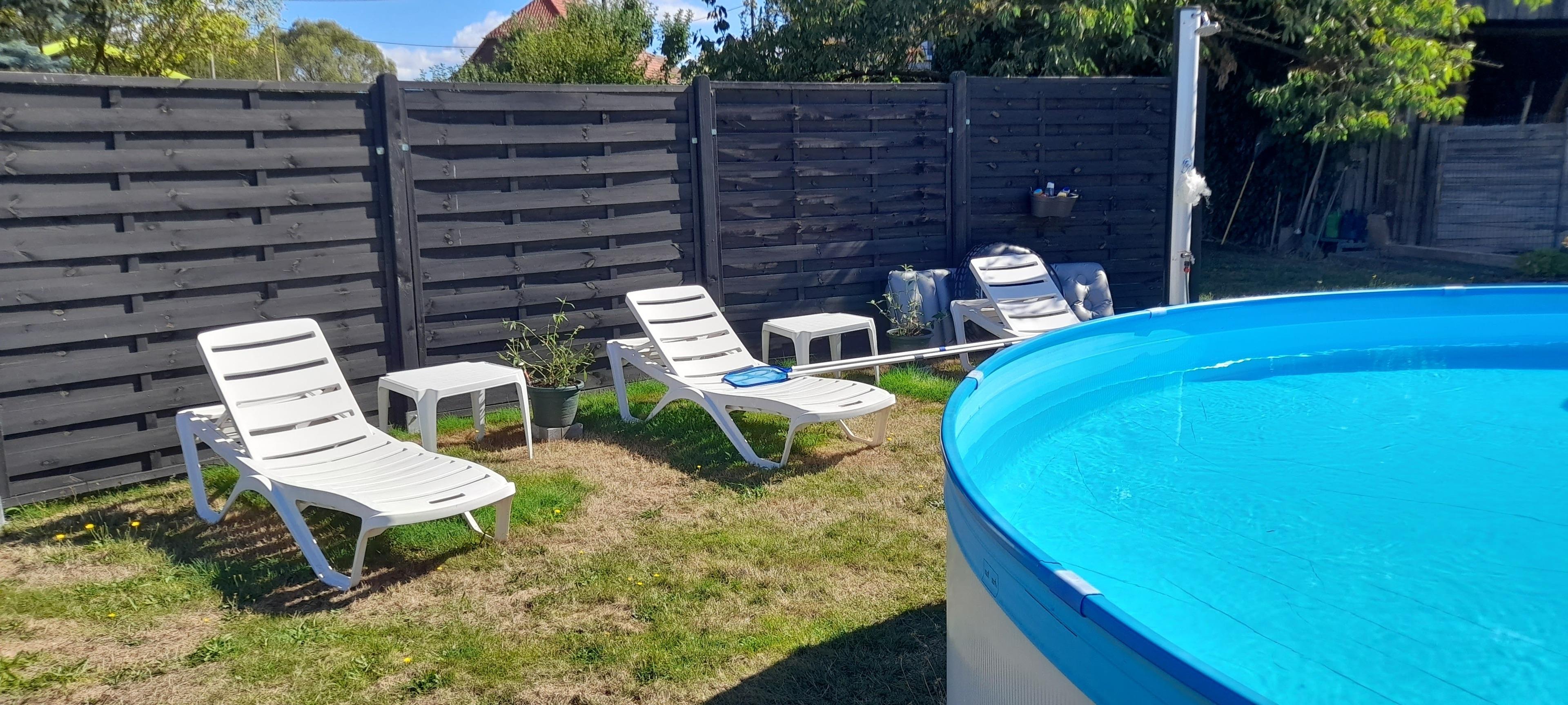 Zur Ferienwohnung gehören 3 Parkplätze und für Ihre Fahrräder gibt es einen abschließbaren Garagenteil. Sie können gerne unseren Garten mitbenutzen. Hier stehen Ihnen eine Laube mit Gartenmöbeln, Sonnenliegen, Sonnenschirm, Grill und für Ihre Kinder eine Spielehaus mit Schaukel, Sandkasten und Rutsche zur Verfügung. Nach Absprache besteht die Möglichkeit den Pool und am Abend ein Lagerfeuer zu genießen.