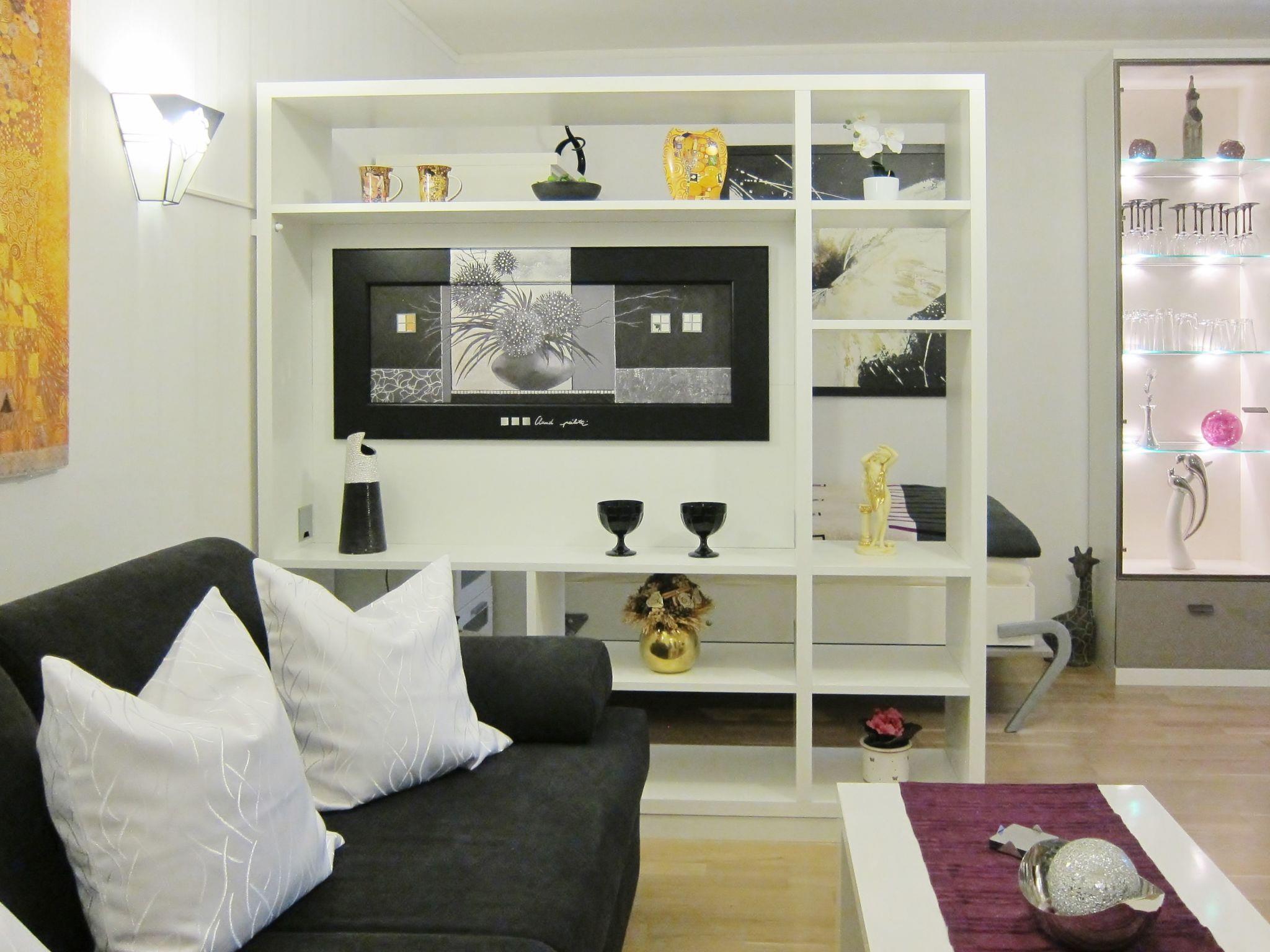 The flat is exclusively furnished to a high standard with a comfortable sofa bed for 1-2 people + foldaway bed, flat screen TV, real wood parquet flooring in the living room/bedroom, modern furniture, a separate, fully equipped kitchen, chandeliers in the living room, hallway and bathroom, etc. - You will feel very much at home, like so many other guests before you.