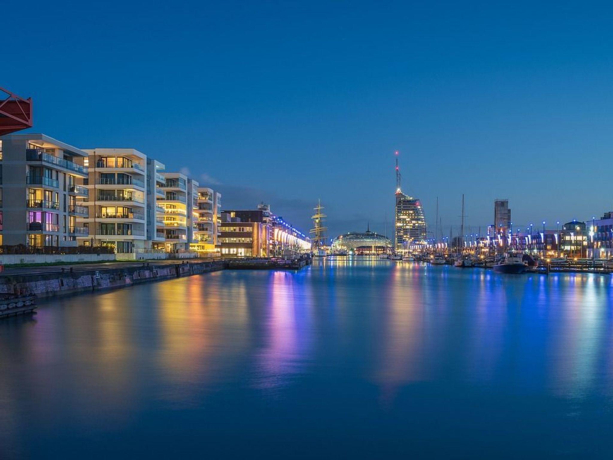 Discover the heart of the seaside town of Bremerhaven in our unique "Klaustermeyer" holiday flat, which offers spectacular insights into maritime life. Located on the 4th floor of the Columbus Centre, our flat covers almost 90m² and is the ideal retreat for up to 4 guests who want to experience the special flair of the North Sea coast. The unforgettable panoramic view of the "Havenwelten" and the Weser gives your stay a magical atmosphere.