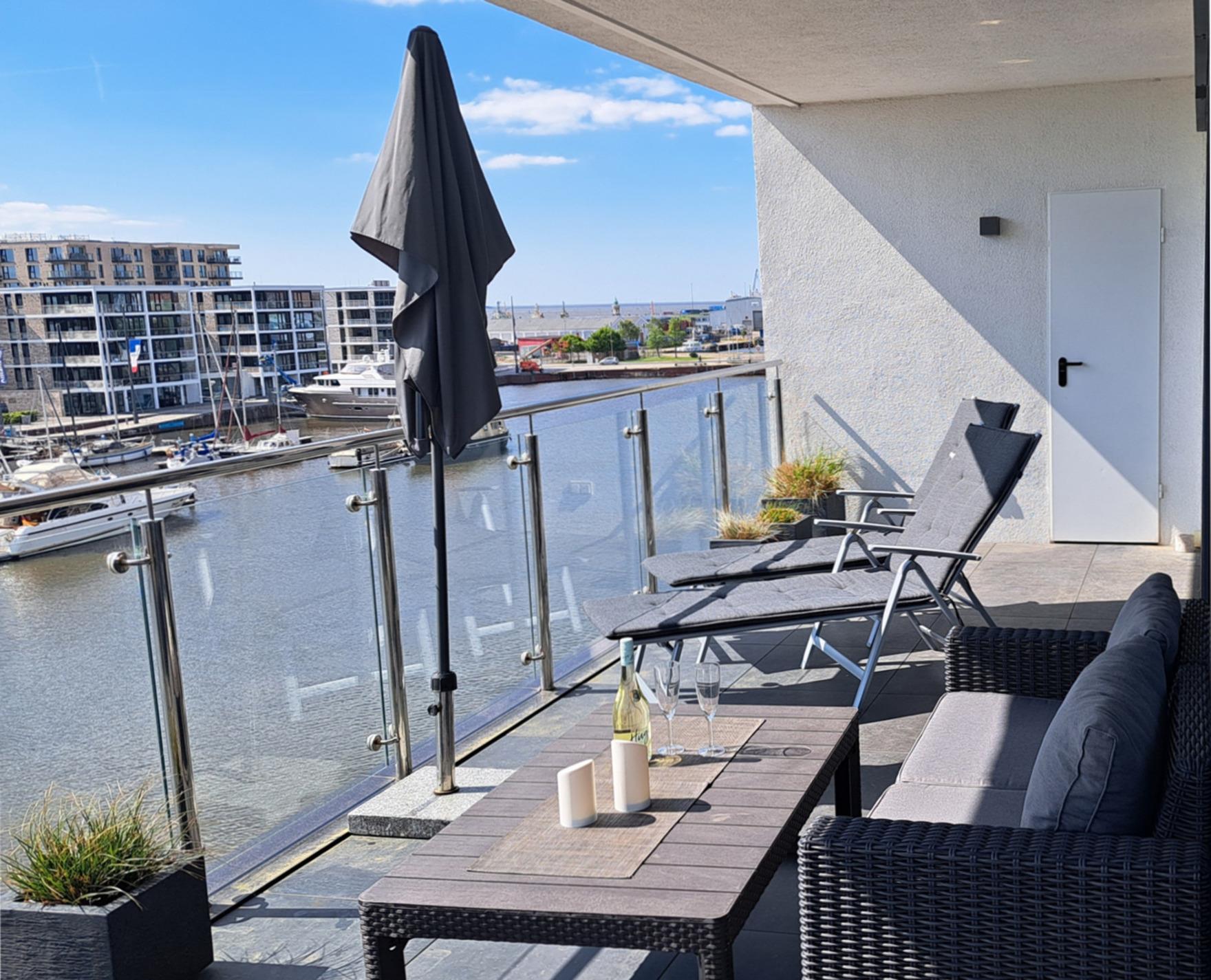 Sonnendeck und ist direkt in den Hafenwelten gelegen. Die Premium-Unterkunft ist ein perfektes Erlebnis mit Hafen- und Meerblickblick.