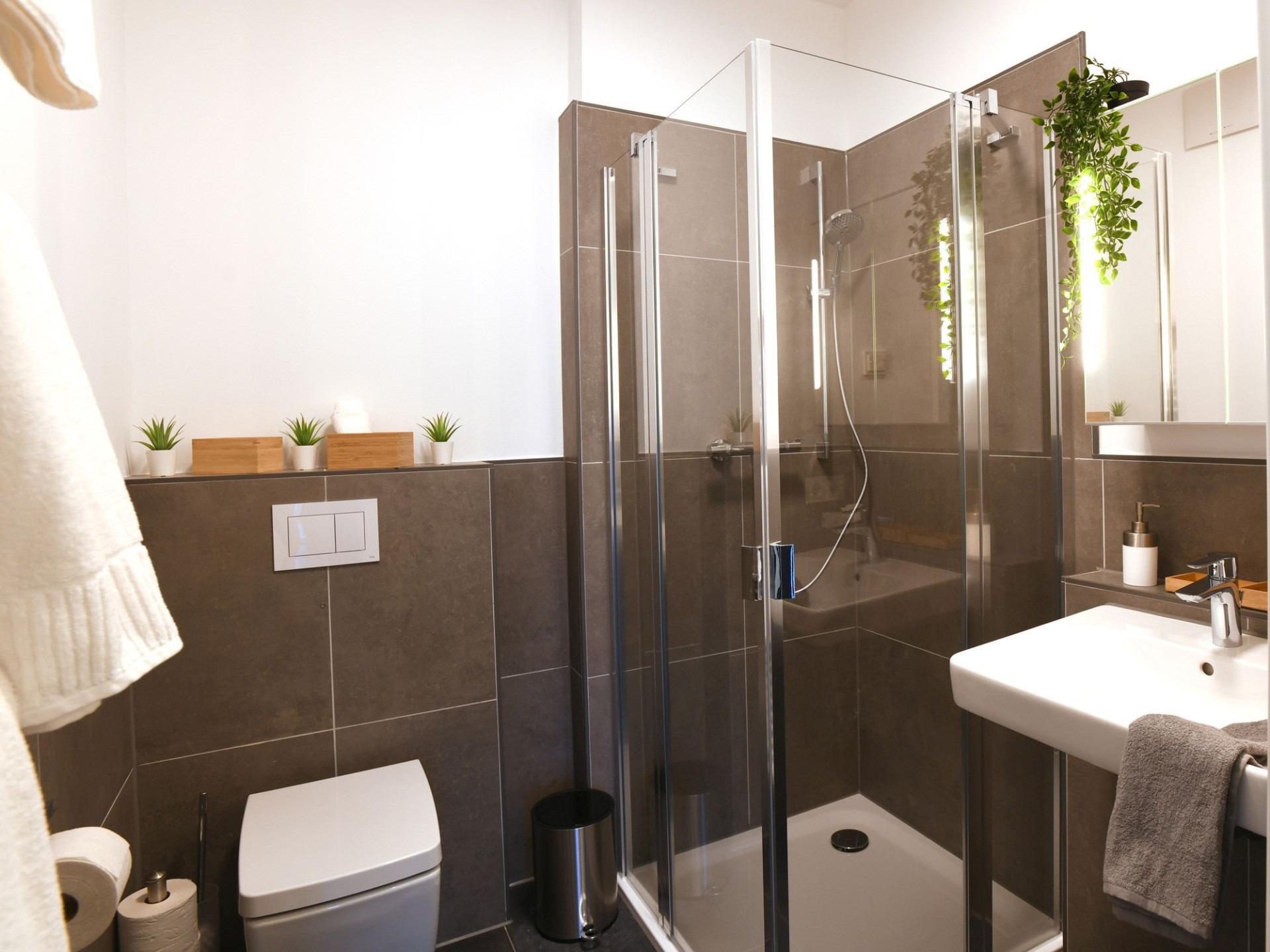 moderne, voll ausgestattetete Küche integriert. Die gesamte Wohnung ist barrierefrei. Im Kühlschrank erwartet Sie ein kleiner Gruß.