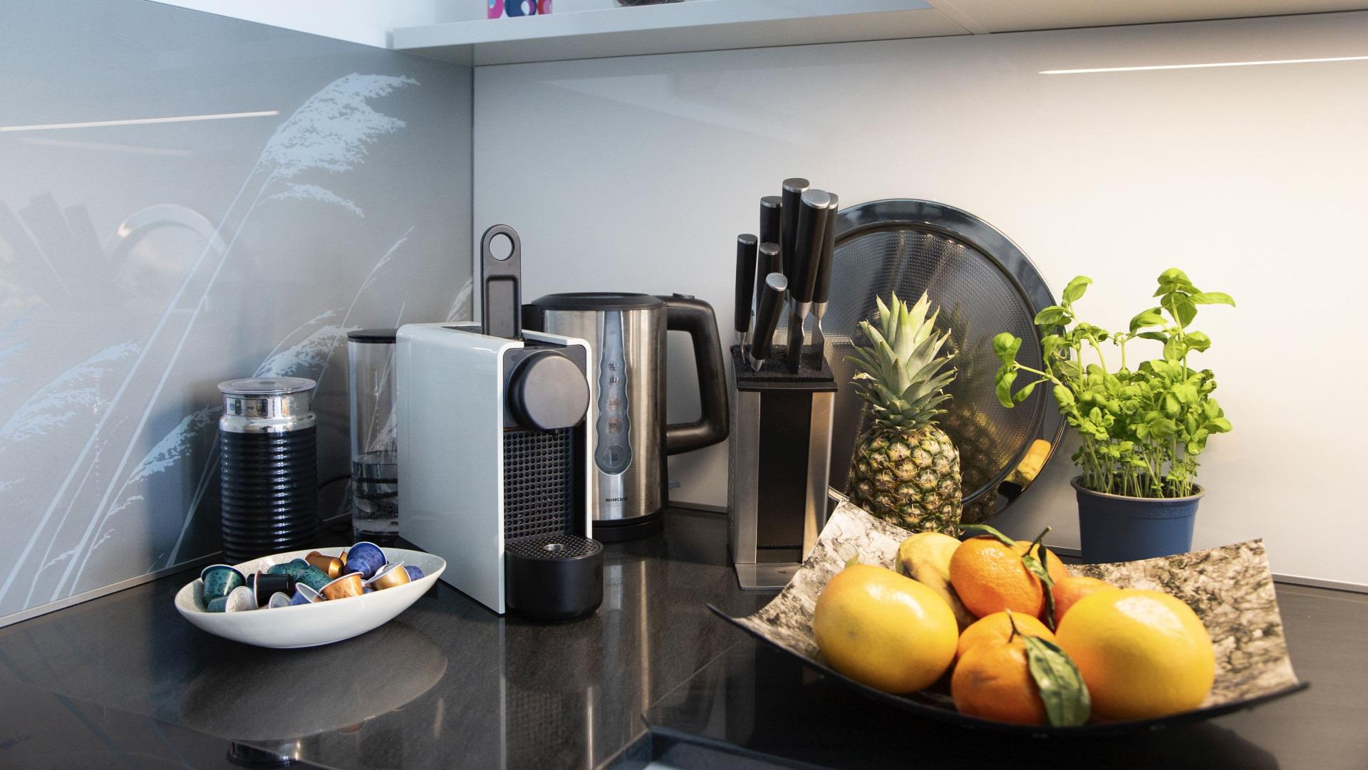 Im voll ausgestatteten Küchenbereich können Sie nach Herzenslust kleine und große Köstlichkeiten zubereiten.
