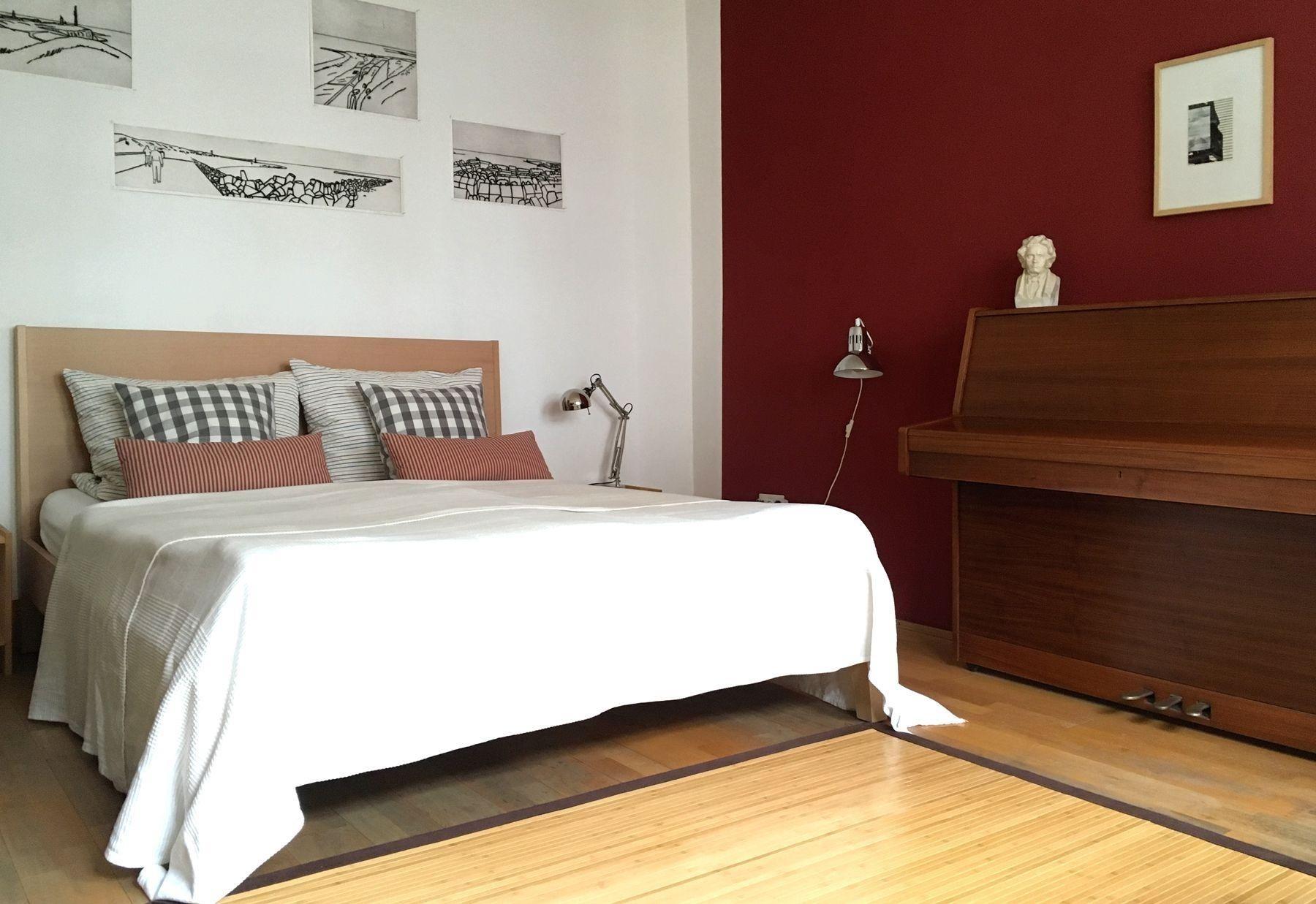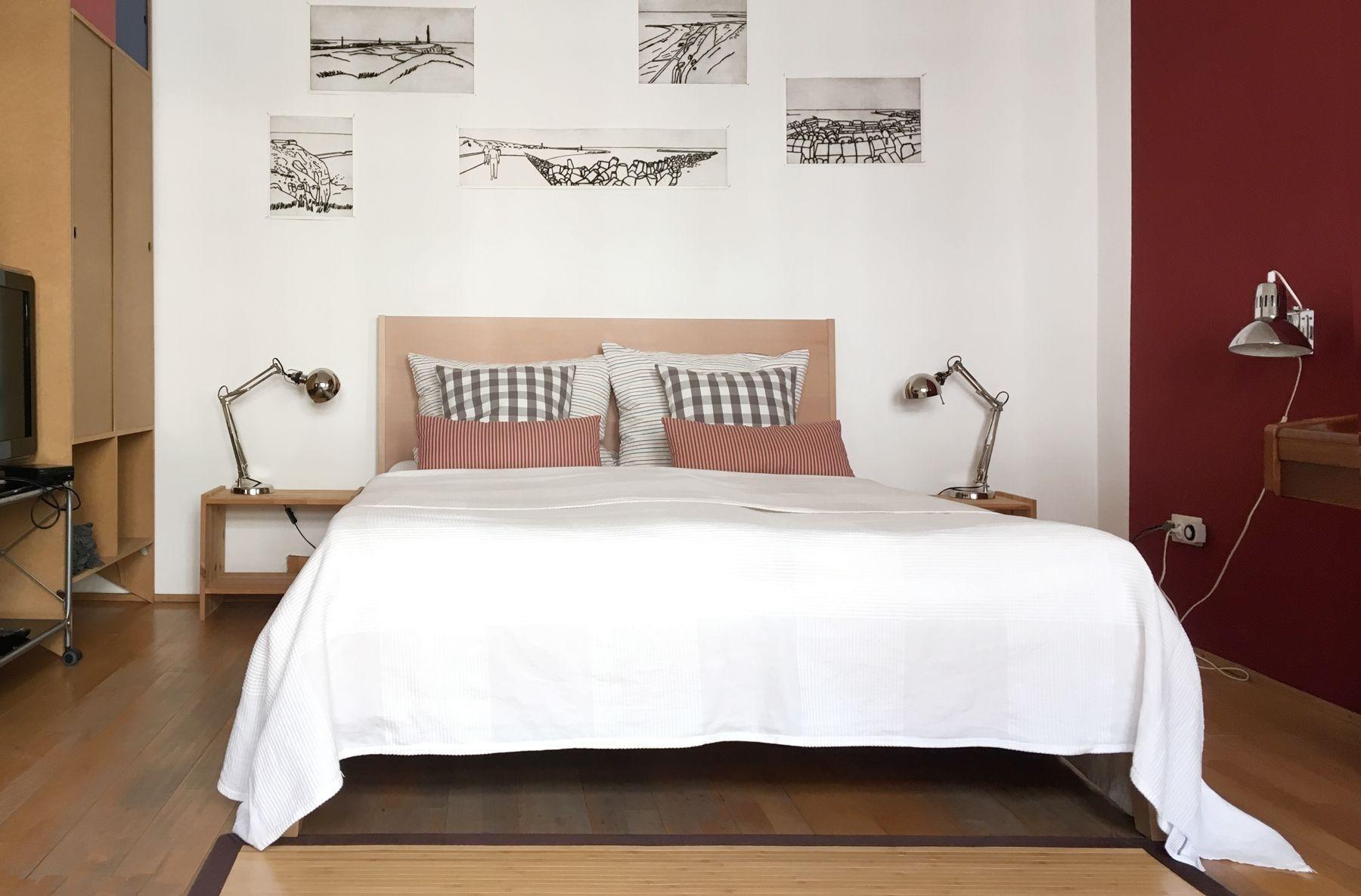 Hell, freundlich, mit klar designten Möbeln, einem Klavier für musikalische Gäste, einem bequemen Doppelbett (1.60 x 2.00 m) und interessanter zeitgenössischer Kunst, die von regional und überregional bekannten Künstlern bestückt ist.